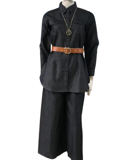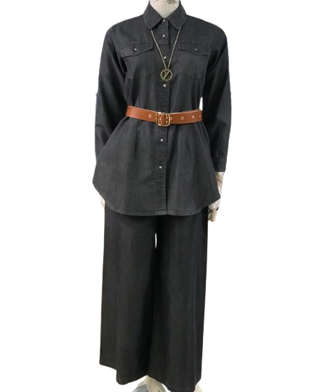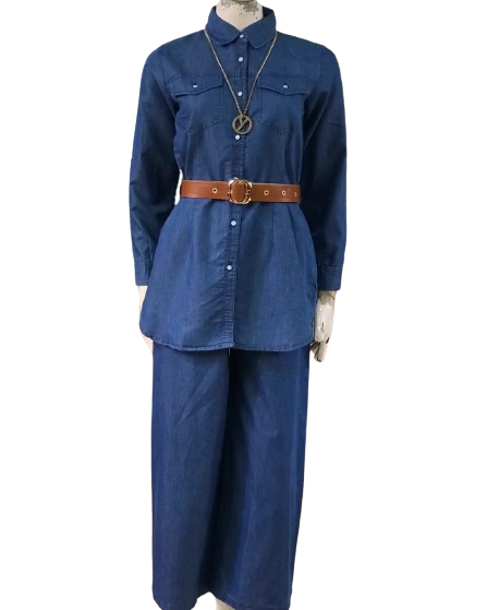 This Denim Top & Trouser set is both stylish and comfortable. Made from high-quality denim, it offers a classic and timeless look. Perfect for any occasion, the set includes a top and trousers for a complete outfit. The durable material and versatile design make it a great investment for your wardrobe. Elevate your style with this Denim Top & Trouser set.