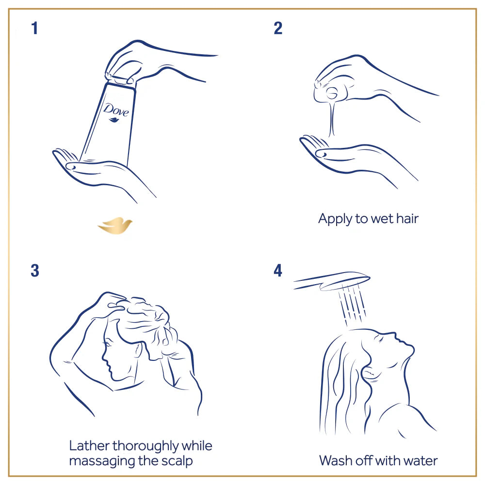 Just apply to wet hair, lather, and rinse. For best results, follow up with Dove Intense Repair Conditioner to experience comprehensive benefits.