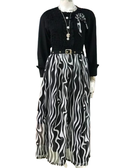 This sophisticated western dress is perfect for any occasion. Its sleek silhouette and subtle details provide a flattering look that will draw attention to you. Whether you're heading to a formal event or just a night out, this dress is sure to make you look and feel your best.