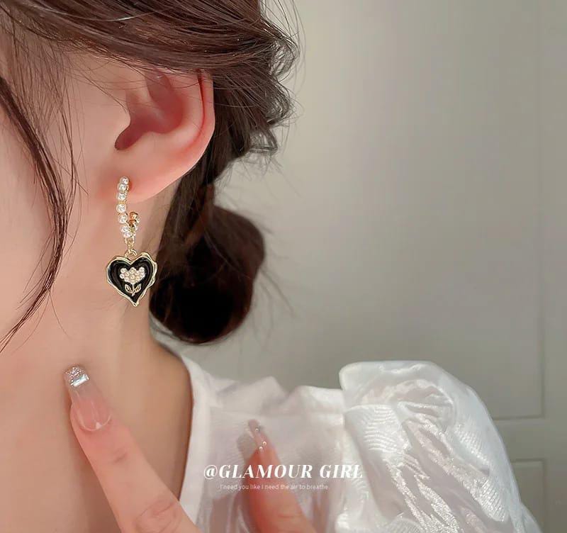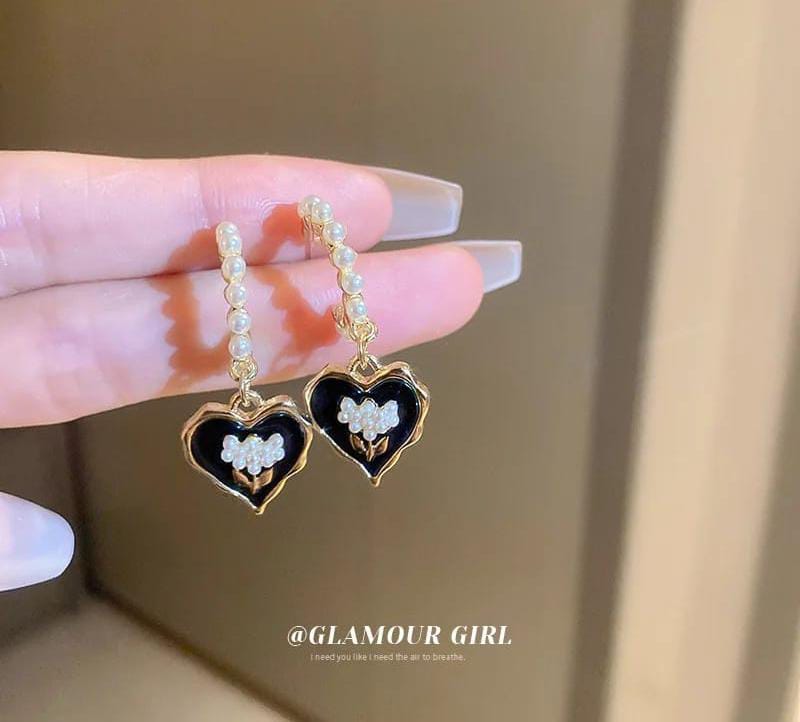 Good Quality Beautiful Earrings Heart Shape Black And Gold
