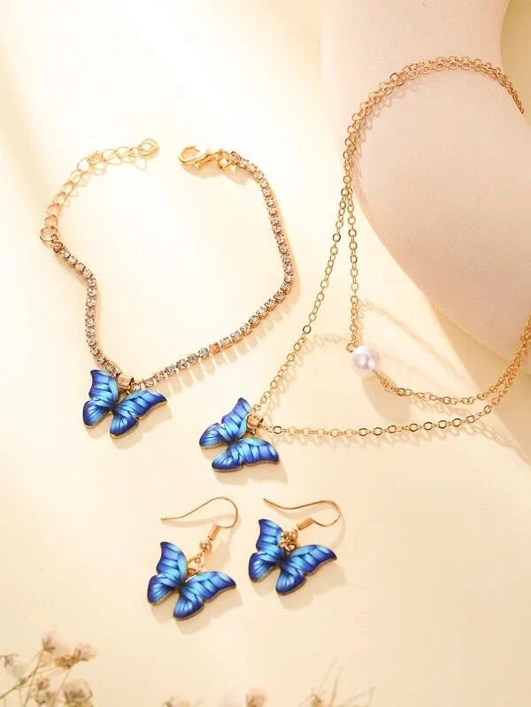 Increase quantity for Shein - Butterfly Jewelry Set Decorated With Artificial Pearls 4 Pieces