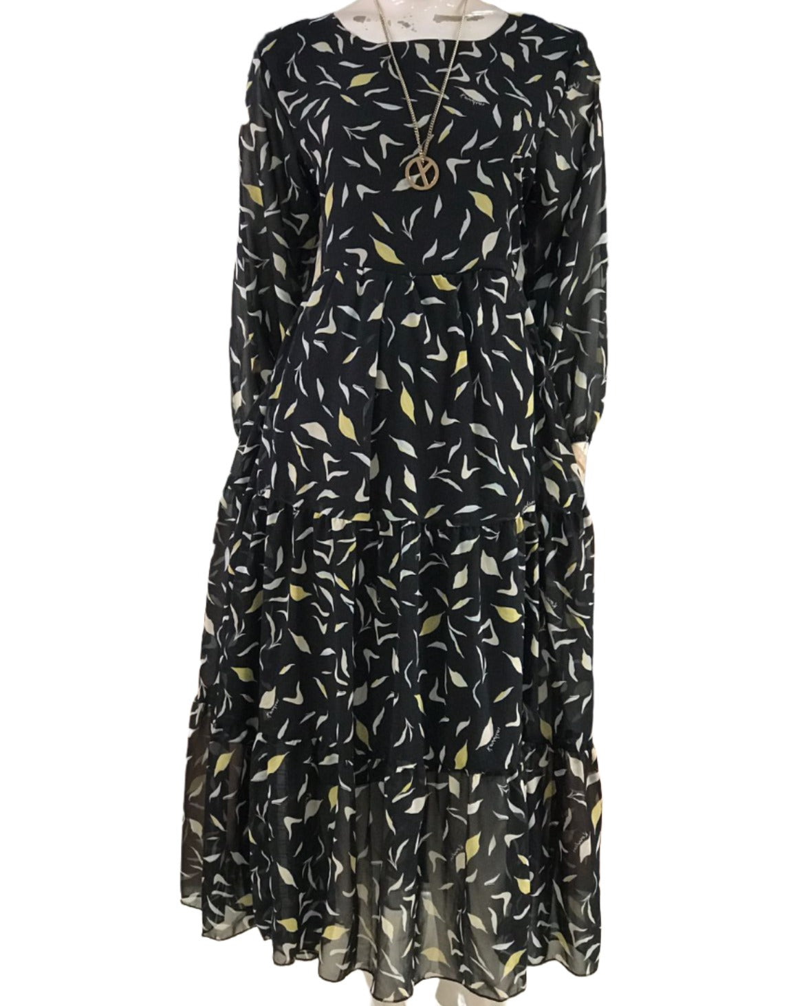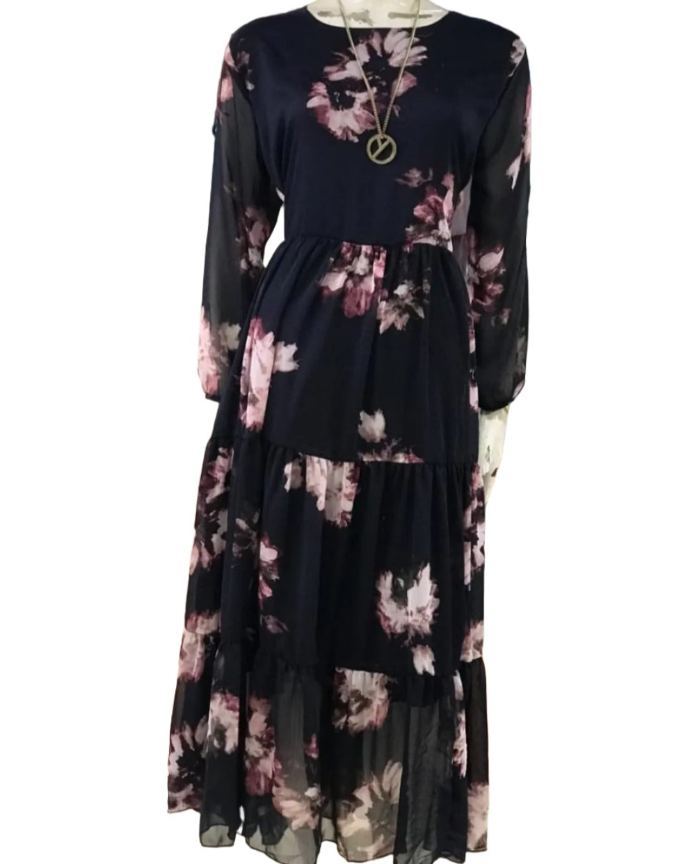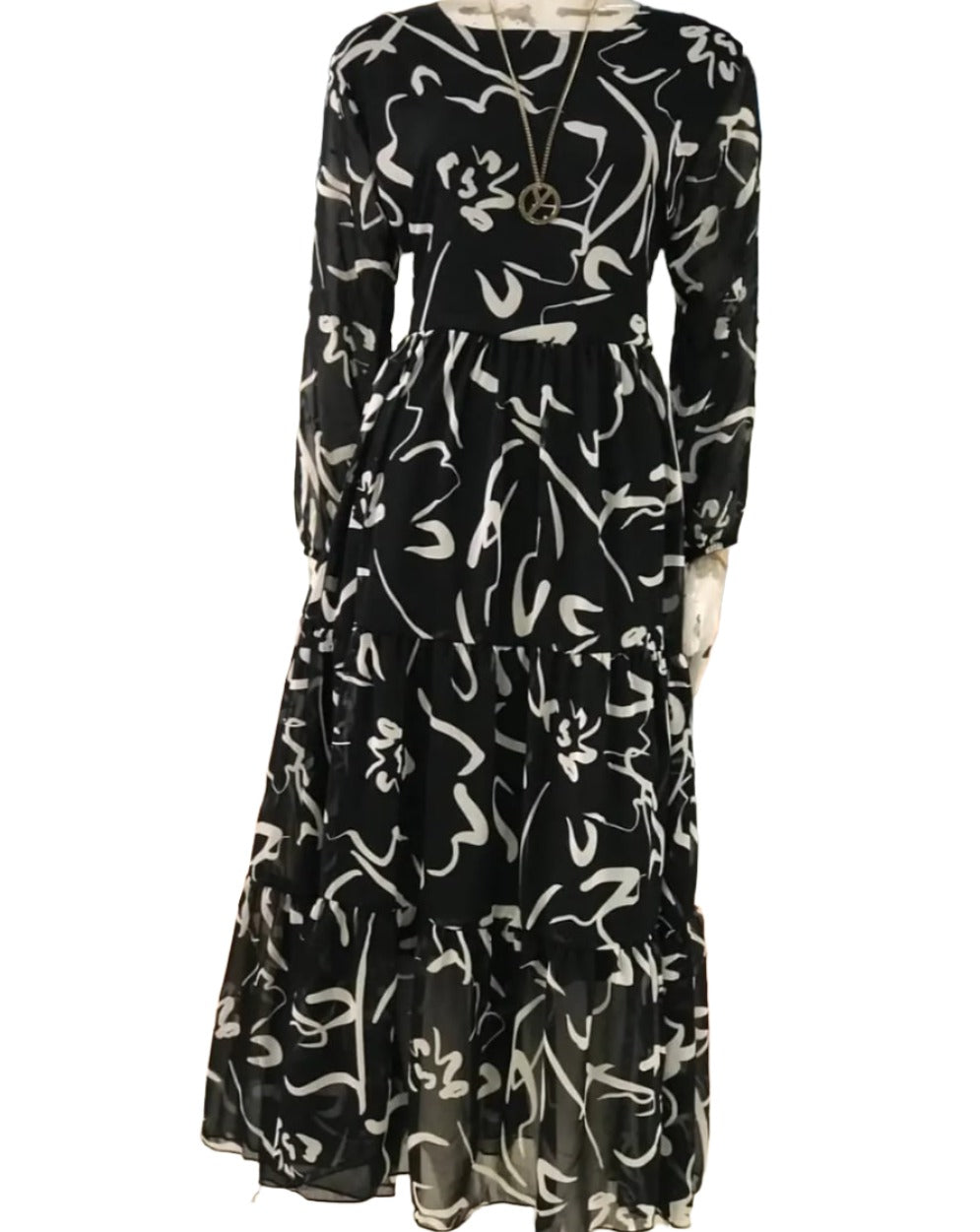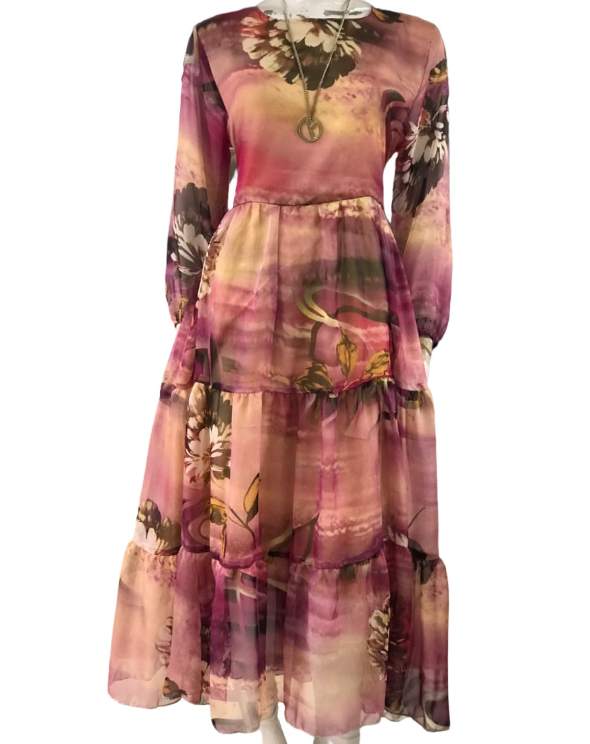 This chiffon dress features a playful flower print. Made with high-quality material for a comfortable and stylish wear. Perfect for any occasion, this dress will elevate your wardrobe with its playful design. Dress it up with heels or keep it casual with flats. Experience fashion and comfort with this dress.
