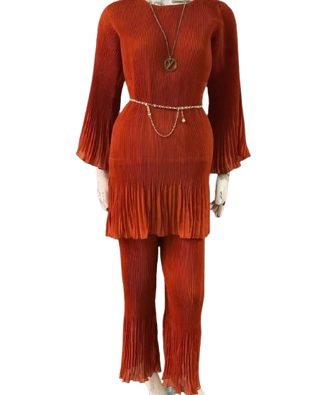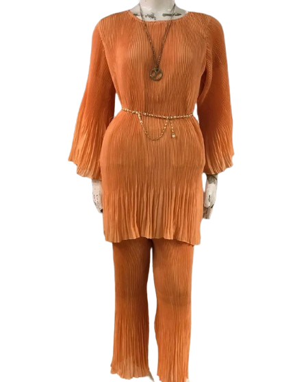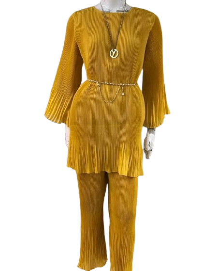 Our Chiffon Top & Trouser set is a must-have for any stylish wardrobe. Made from high-quality chiffon fabric, it offers a luxurious and comfortable fit. The top and trouser combo provides a complete and versatile outfit, perfect for any occasion. Elevate your look with this elegant and timeless ensemble.