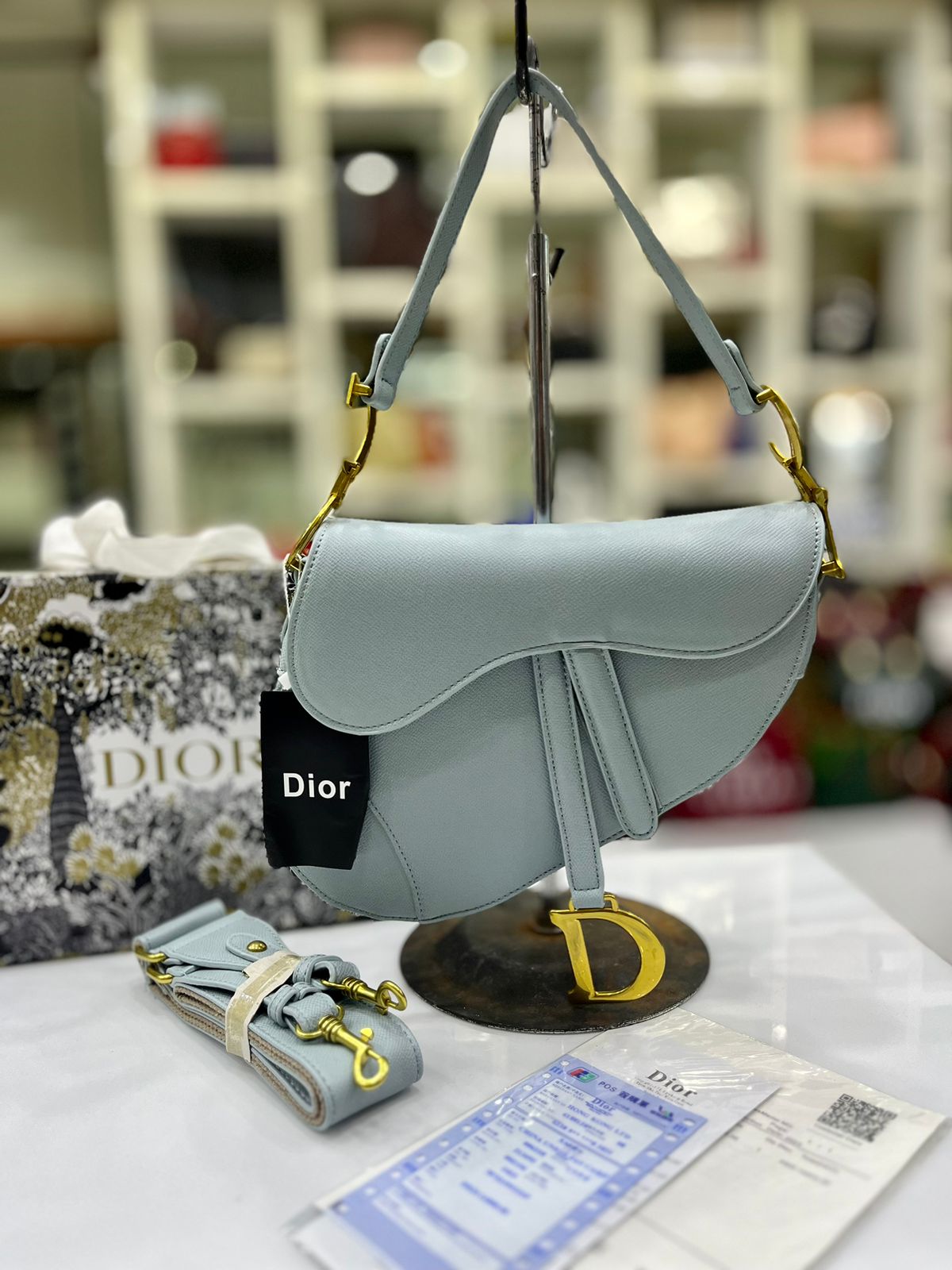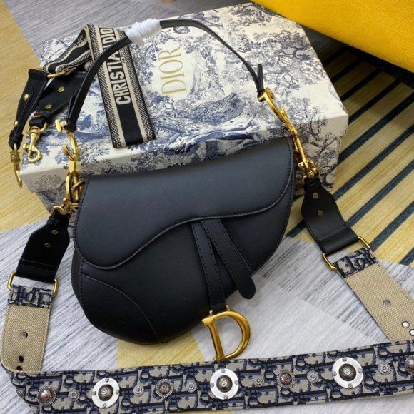 CHRISTIAN DIOR Saddle bag with master quality craftsmanship. Features a brand tag, inner label with serial number, dustbag, invoice, and magnetic box. Invest in luxury with the iconic brand known for its timeless elegance.
