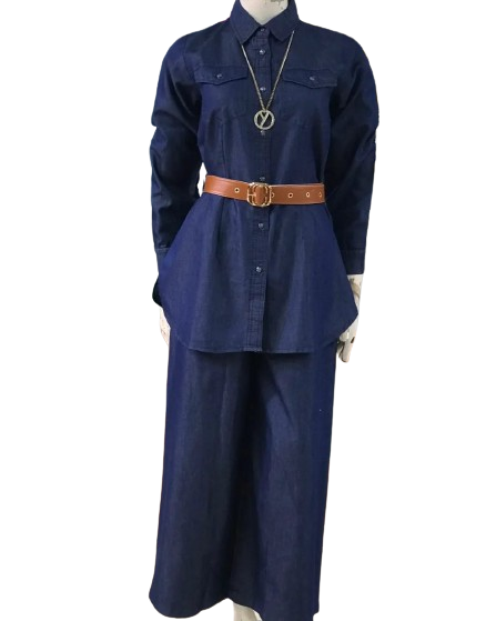 This Denim Top & Trouser set is both stylish and comfortable. Made from high-quality denim, it offers a classic and timeless look. Perfect for any occasion, the set includes a top and trousers for a complete outfit. The durable material and versatile design make it a great investment for your wardrobe. Elevate your style with this Denim Top & Trouser set.