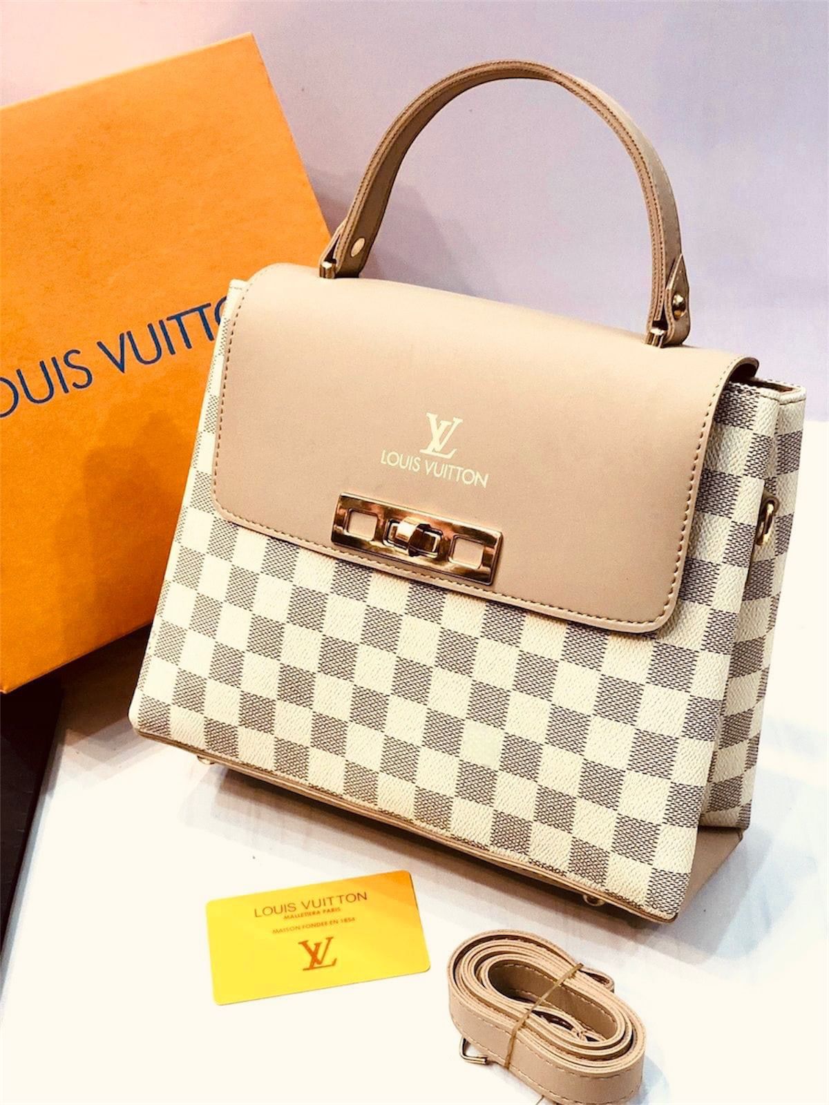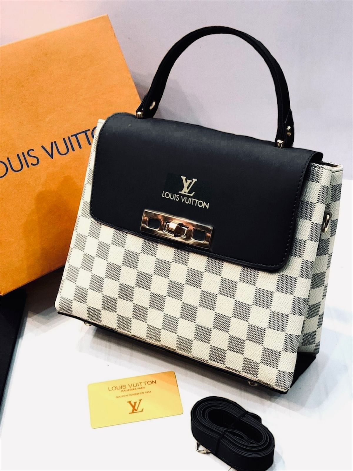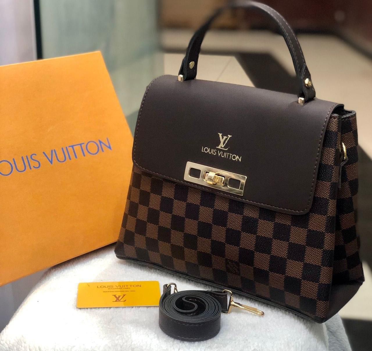 This Louis Vuitton bag boasts a high-quality construction with a durable metal lock on the flap.