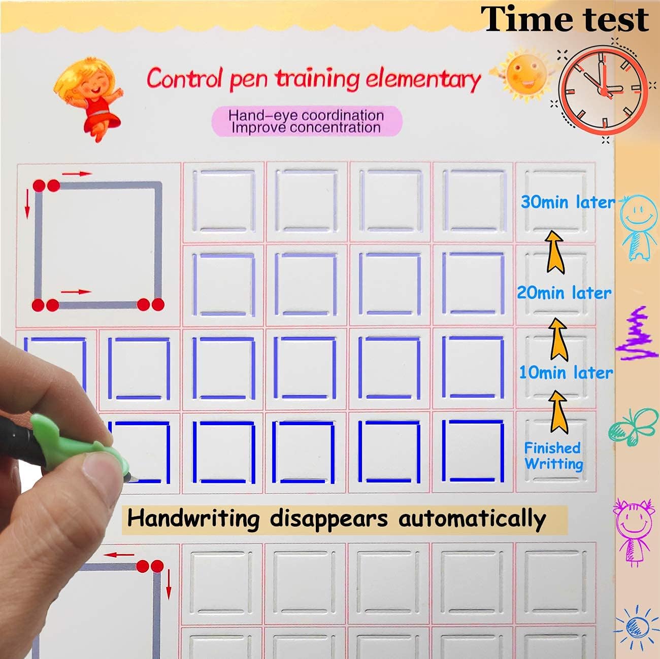 ✍【Material & Reusable Function】 Magic Practice Copybook made of thick paper,no curling,uses the groove design,Handwriting will automatically disappear after dry, therefore, the copybook can be repeatedly use for a long time, help kids write beautiful English words and numbers.