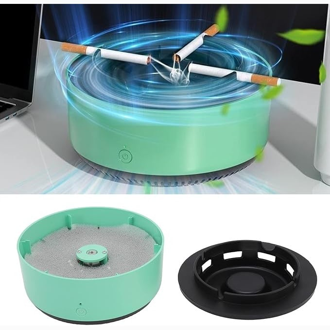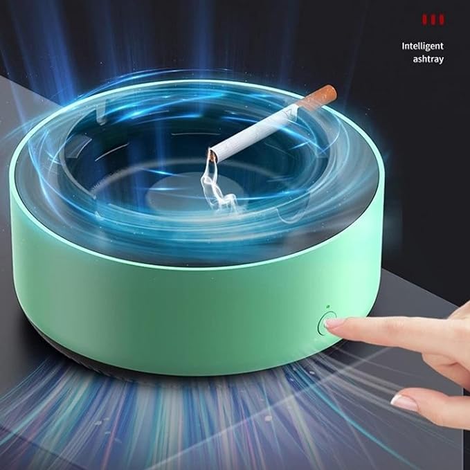 Low Noise Powerful Fan -- The smart ash tray has built in low noise powerful fan, powerful turbine fan, one key start powerful purification, and low noise operation. Thickened composite filtering progressive and efficient air purification, high density composite new filter screen, intercepts pollutants, absorbs and decomposes smoke and various odors step by step, and actively purifies, leaving no dead space.