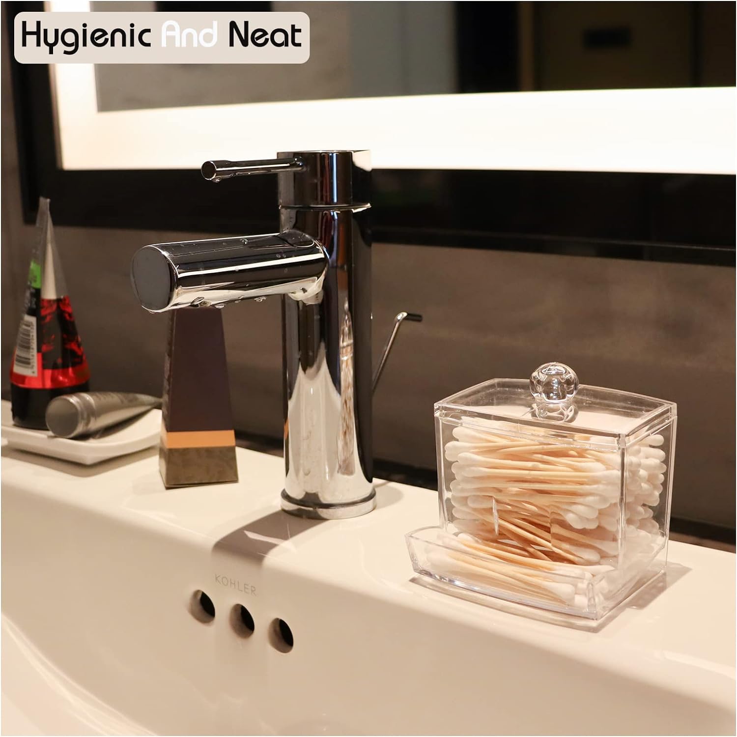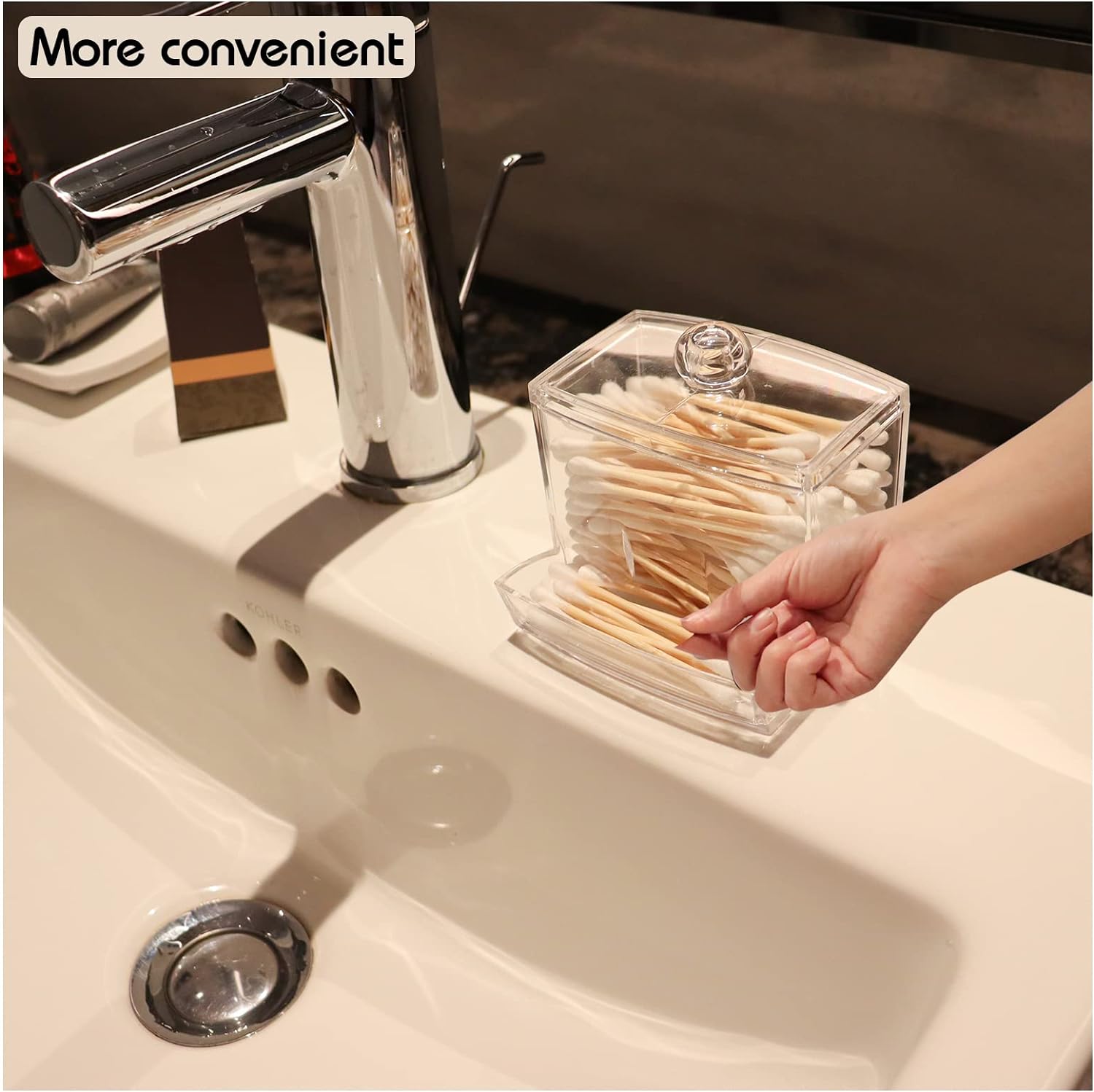 ✨WIDE RANGE OF APPLICATIONS:The plastic clear container with transparent design completely bids farewell to the trouble of the traditional glass bathroom jars which is easy to break and has potential safety hazards. Cotton swab storage jar can be widely used in bathrooms, kitchens, living rooms to make your room more tidy.