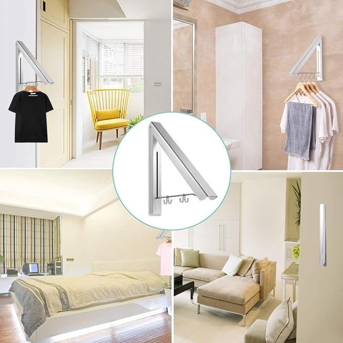 Space-saving: an excellent space-saving folding coat rack stand. This hanger requires about 10 inches of space to hang clothes. The retractable design makes it easy to fold into a wall mounted rectangular bar and provides a very large space for organising clothes. The wall mounted hanger is ideal for small spaces, corners, bathrooms, on a patio or patio etc.