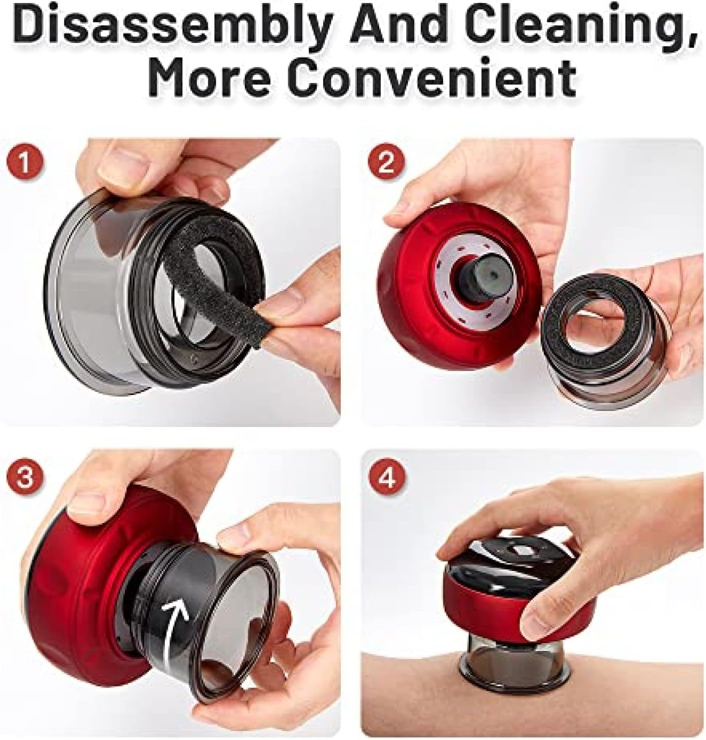 Dynamic Smart Red Light Cupping Technology: Cupping sets with rhythmic alternation of suction and release, which boosts blood circulation faster to the cupping area and speeds up the recovery process.