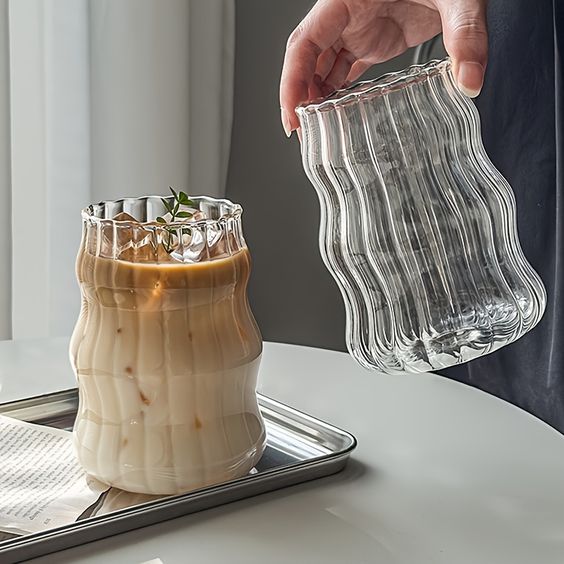 Increase quantity for Home.Co - Glass Tumbler with Lid & Straw - Ribbed Wave
