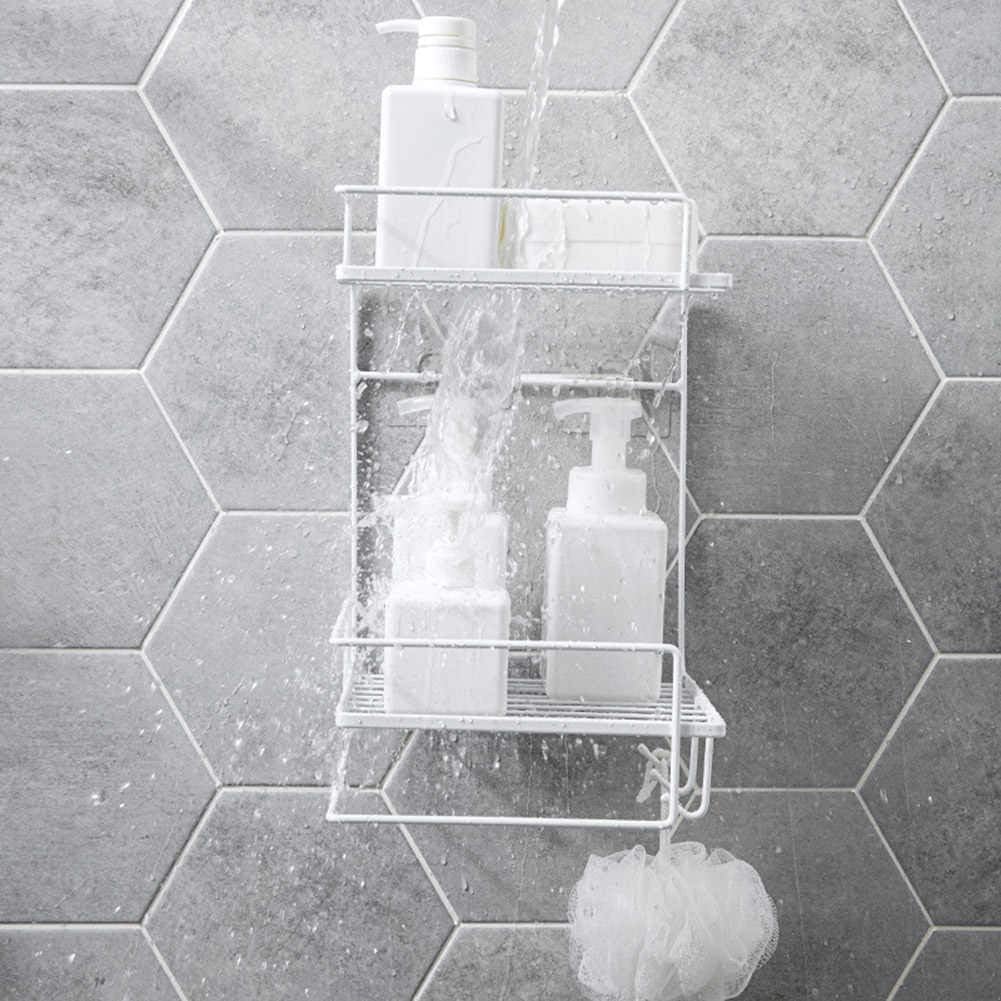 Design: Double-deck design, place shower products, take towels and other hooks, take bath balls, wash brushes, etc., with three hooks.