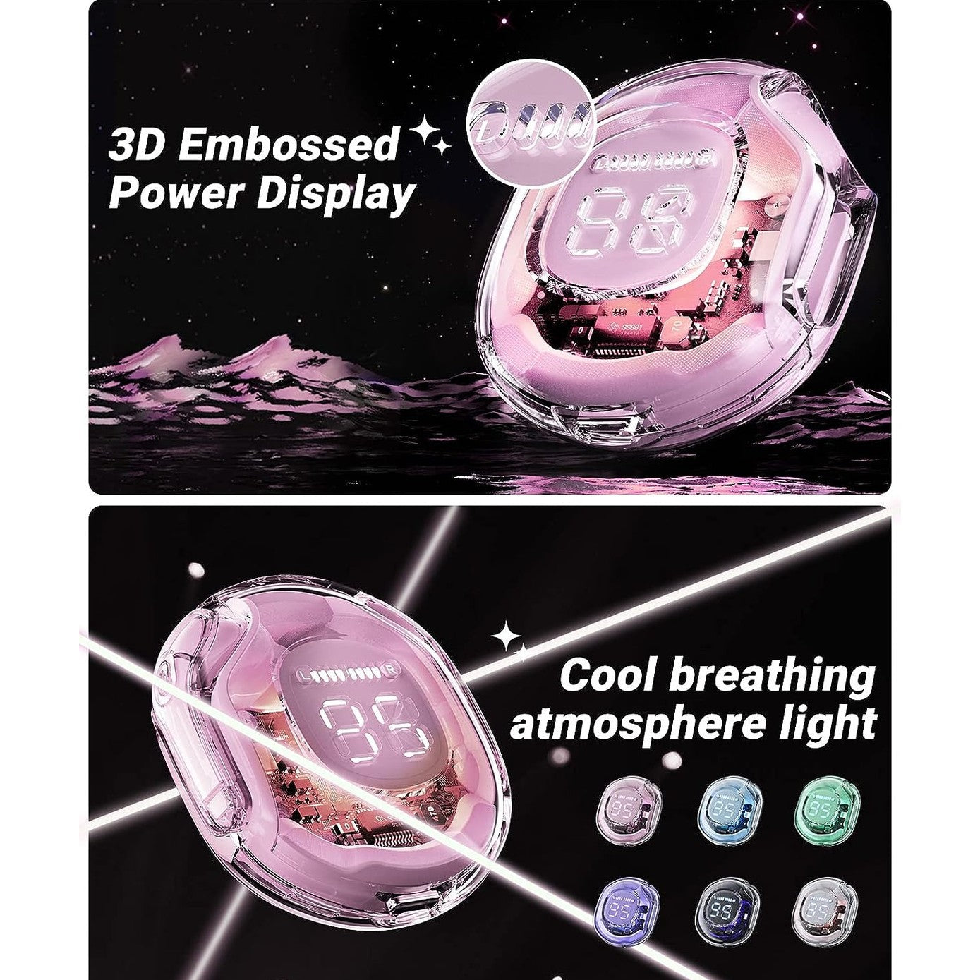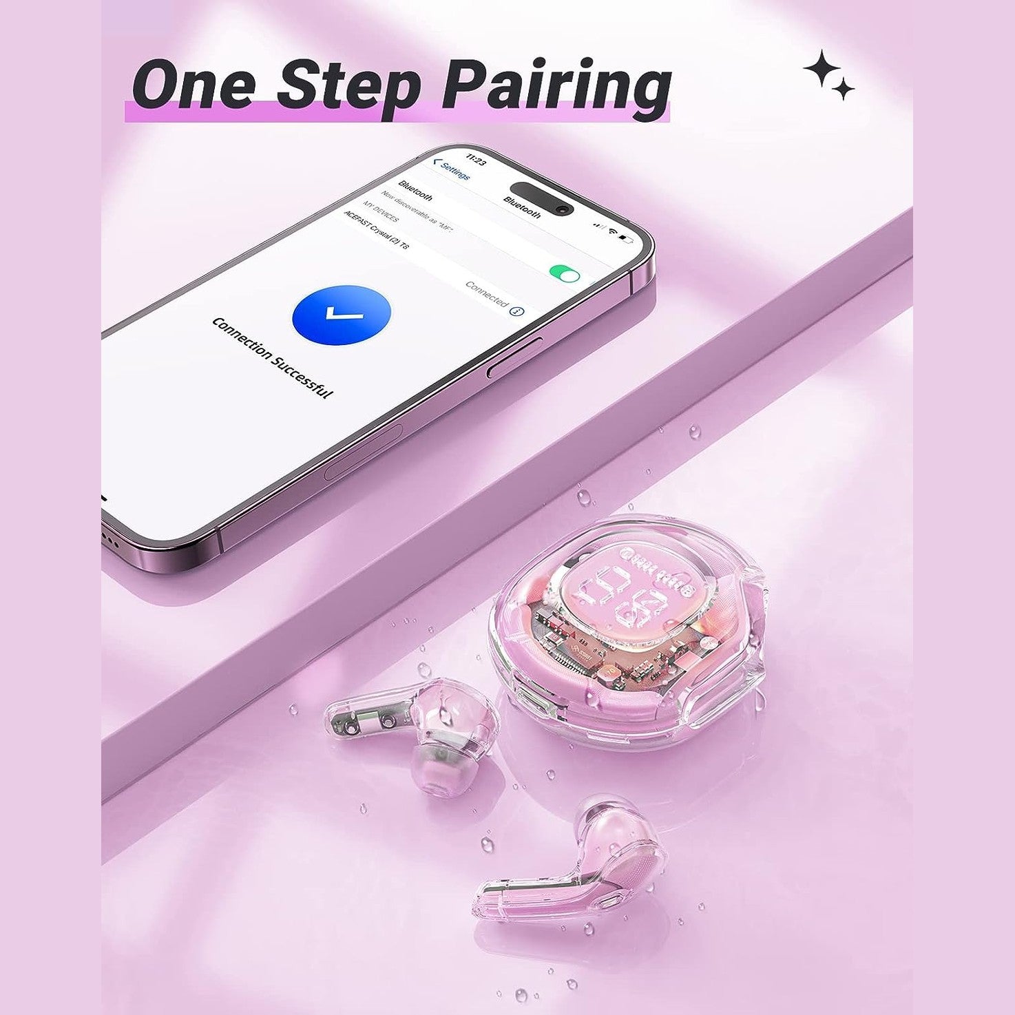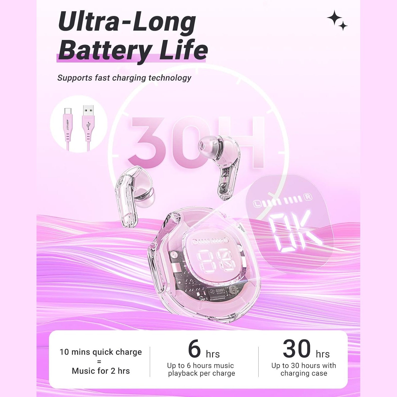 ✨[LED Digital Display, Crystal Colorful Design] ACEFAST is an emerging brand in the wireless earbuds market with futuristic design earbuds. The latest TWS sports a crystal clear transparent design and it has an LED light under the case. The 3D embossed display make easily know the power status of Bluetooth earbuds, and the 480mAh battery capacity of the charging case provides four full charges for both 45mAh earbuds, each lasting play to six hours on a single charge.