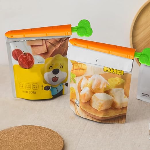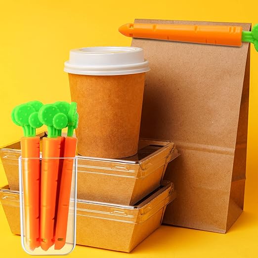 ►【Unique design】: the carrot-shaped clips for bag clips can be easily opened and locked, brings fun to...