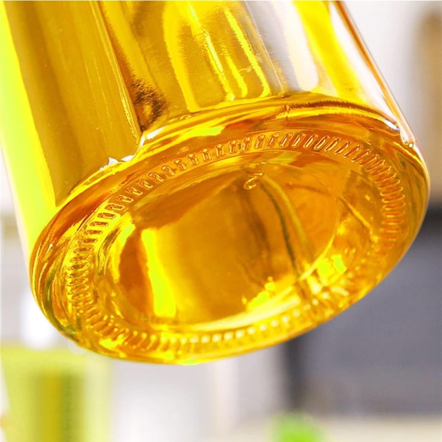 The glass oil bottle is perfect for dispensing liquid condiments, like olive oil, vinegar, sauce, cooking wine and more. Easy grip and non-slip bottom, widely used and convenient kitchen gadget.