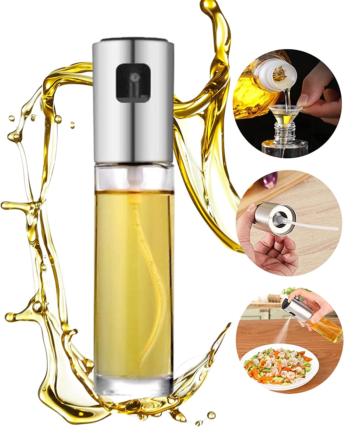 Top-notch materials: Forget everything about those old-fashioned plastic spray bottles. This sprayer’s cap is made with premium quality stainless steel, and the body is 100 percent glass bottle. BPA-free, food-grade material, safe to use for cooking, seasoning, or baking.