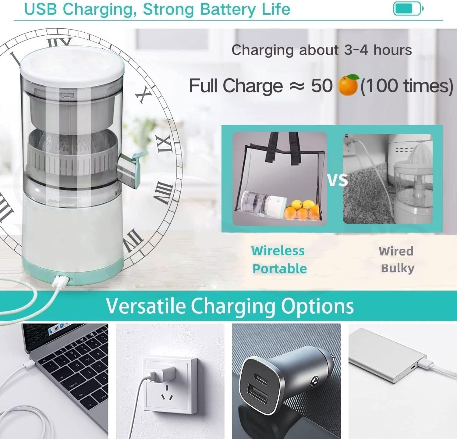 🍊 【USB charging】Electric orange squeezer can be charged via usb. After being fully charged, it can be used anywhere without the limitation of power supply. Even an outdoor picnic is equally convenient to carry.