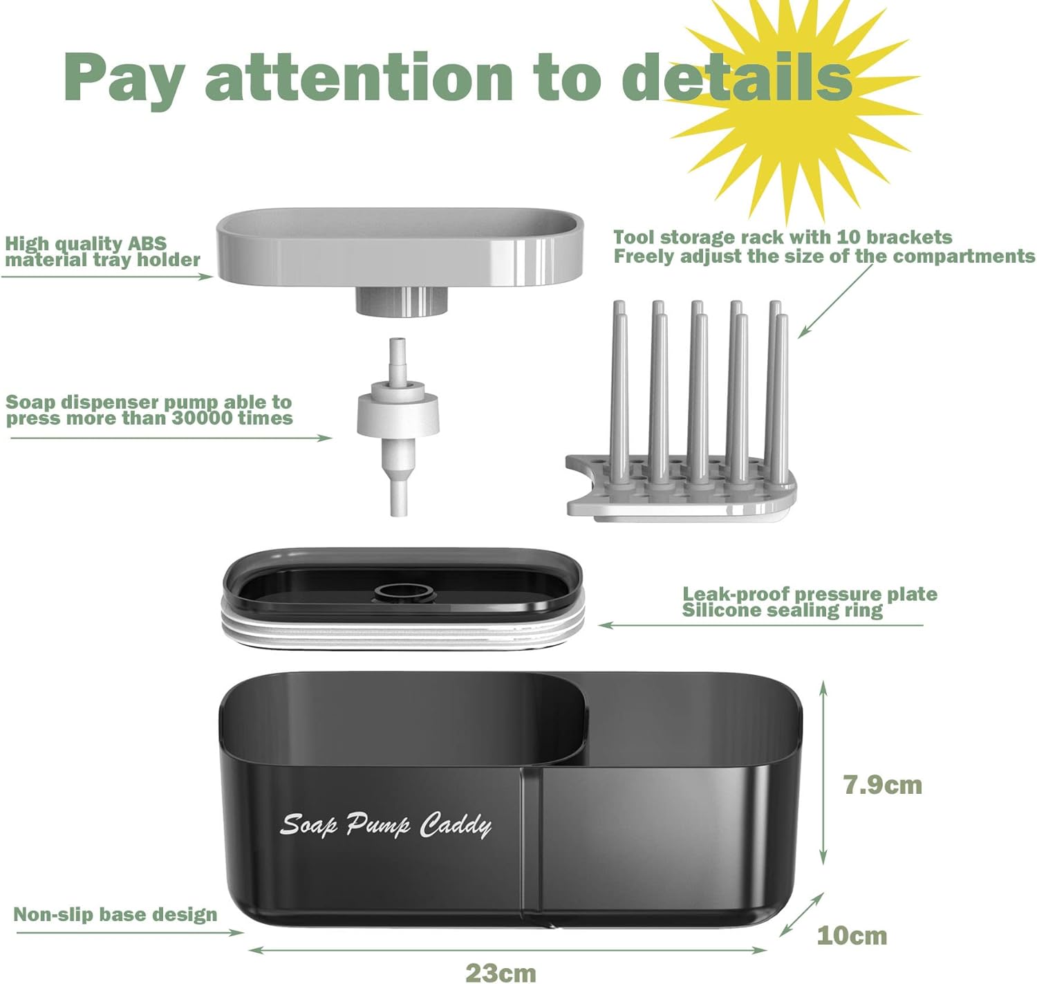 3-IN-1 SOAP SPONGE HOLDER: The simple and modern design includes a soap dispenser, a tray holder and...