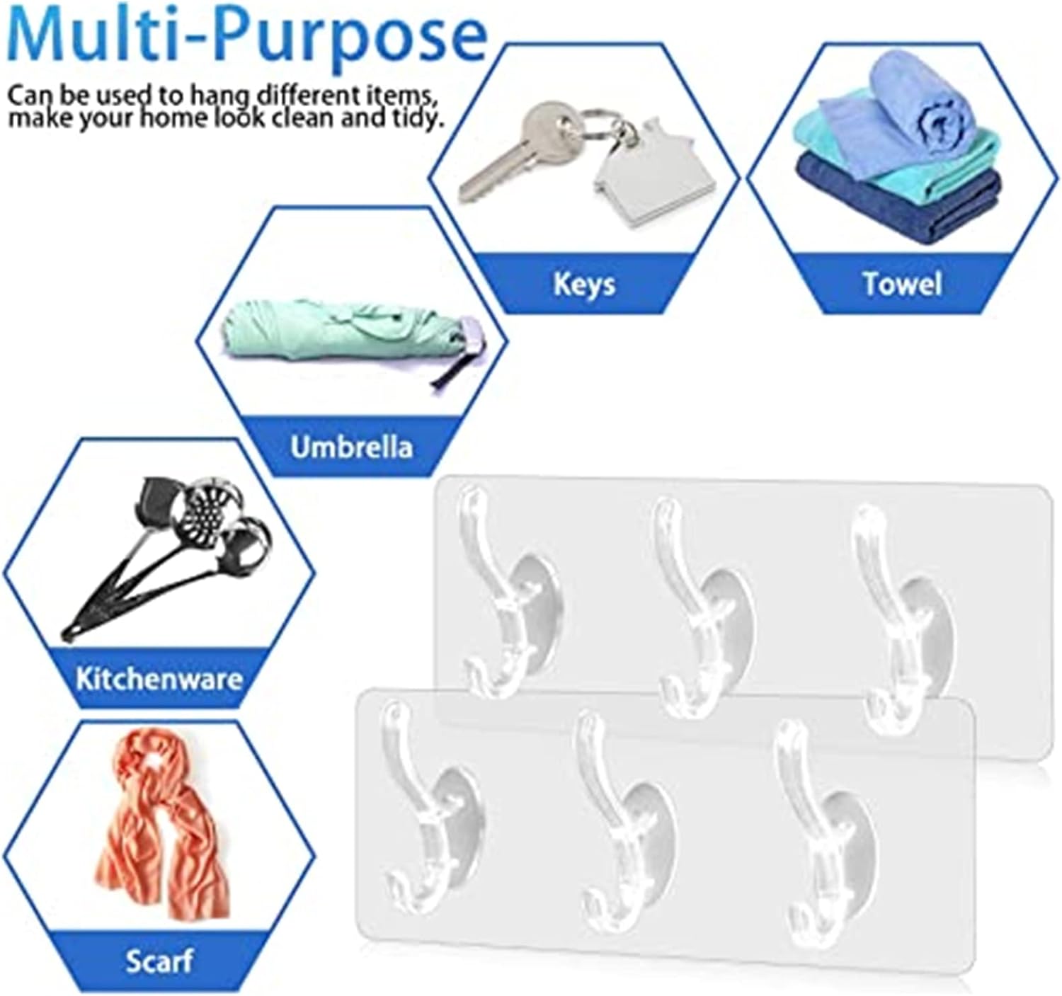 【Transparent Wall Hook】The self-adhesive row hooks differ from traditional wall hook types, reusable self-adhesive wall hooks are...