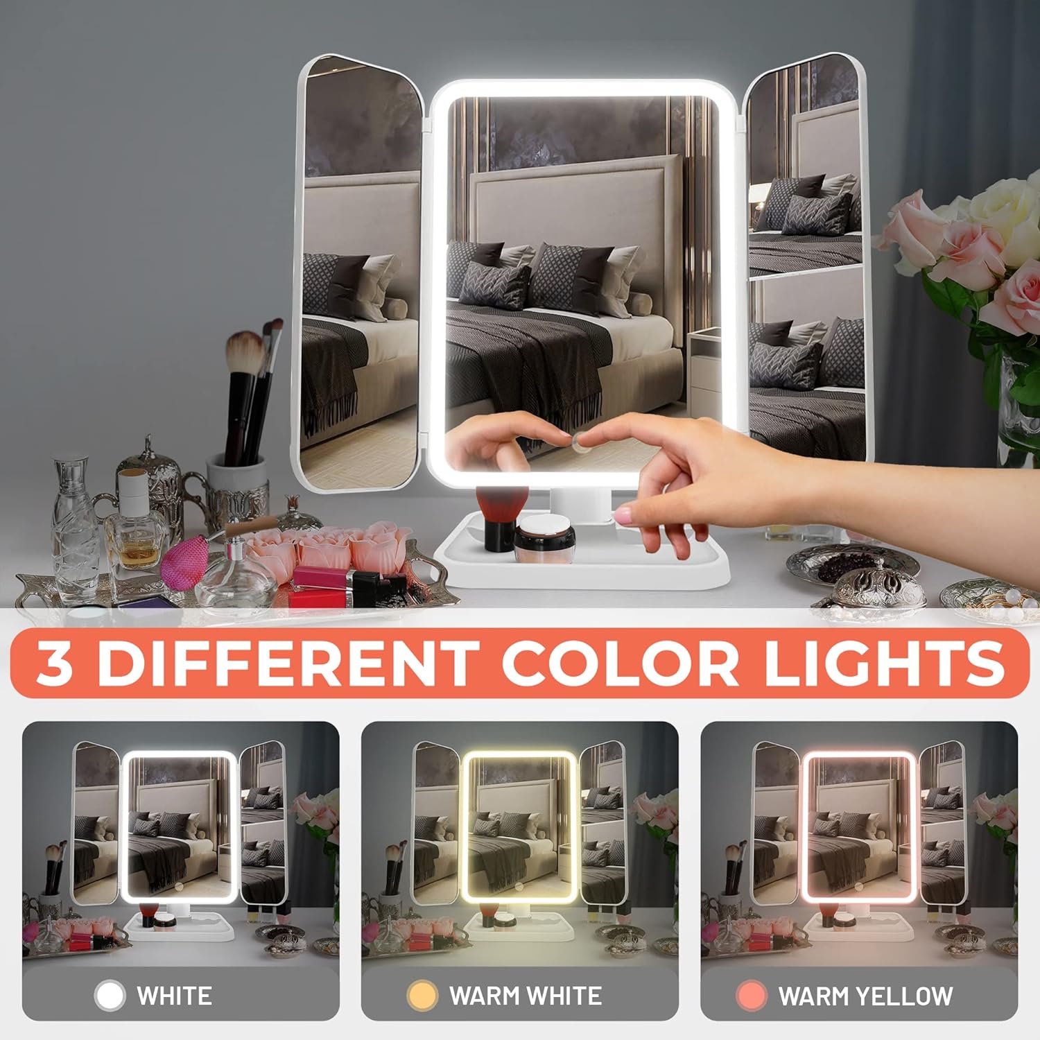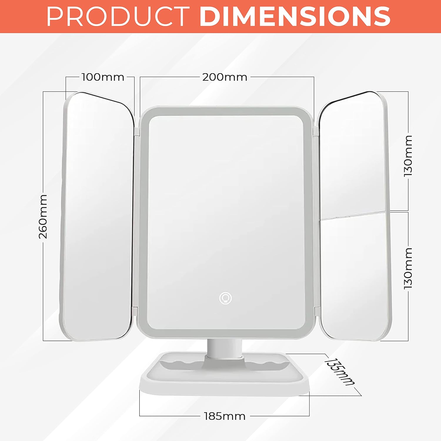 Touch function for easy operation: no annoying switches or buttons. With just a simple touch, you can turn the lighting on or off and switch between the different light modes. Modern technology for an effortless make-up experience