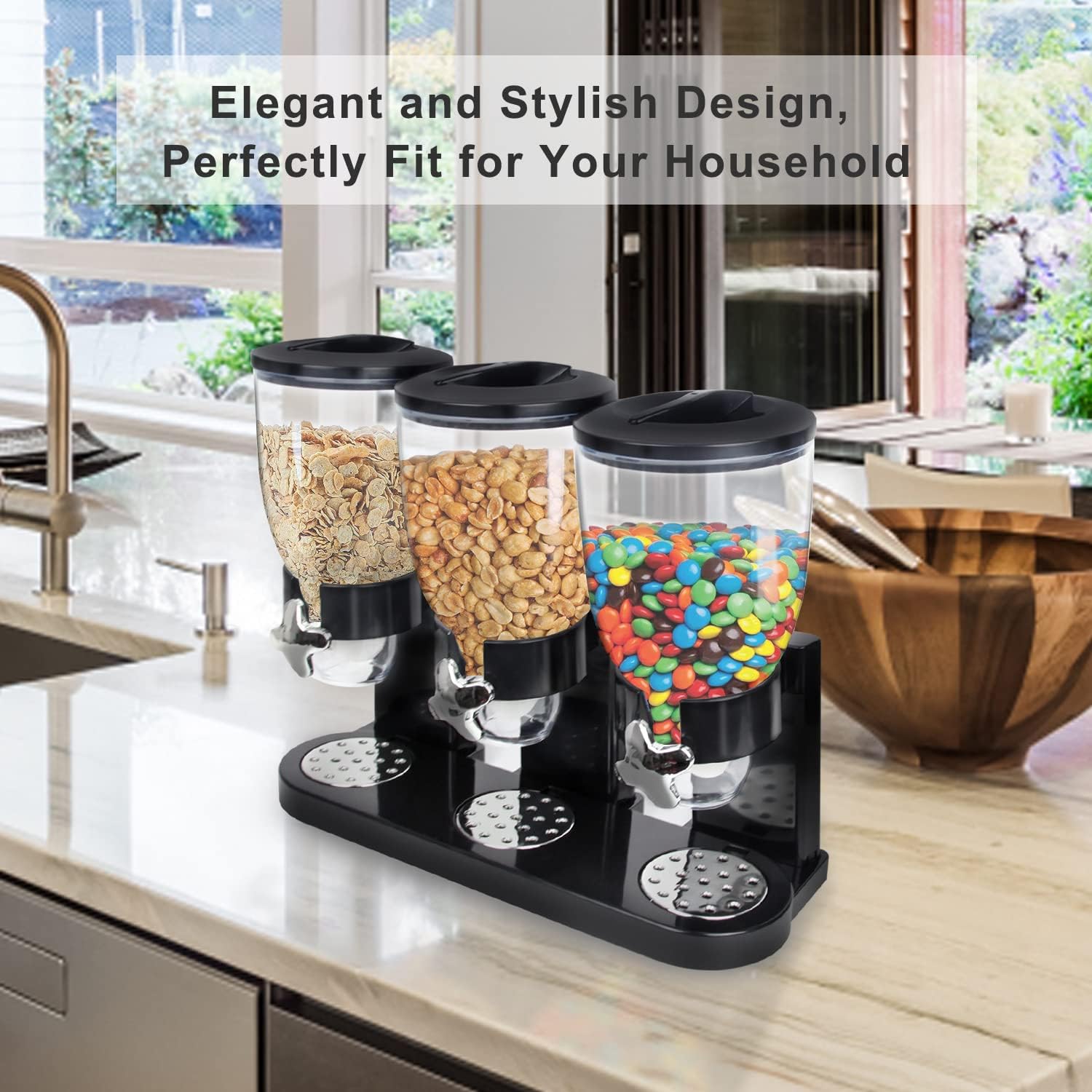 ?DECENT DESIGN?Practical and elegant food dispenser design, not only can preserve your candy, nuts, granola cereal and etc safely but also perfectly fit for your household.