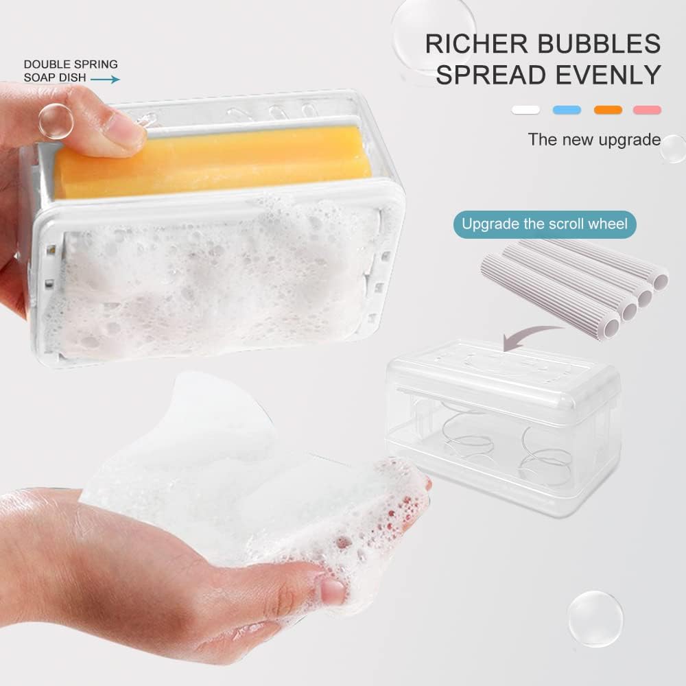 Free Hand Free Foamie Soap Box Simply place the soap in the soap box with the innovative roller foam design, rub it a few times when washing, the rubbing of the roller can create a rich foam without hurting your hands. The perfect laundry!