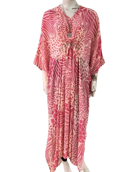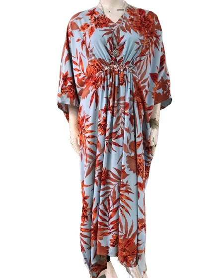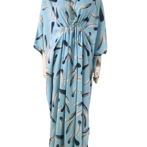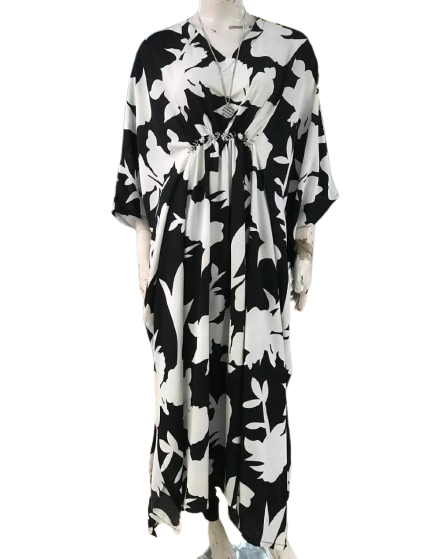 Kaftan Dress showcases a luxurious, flowing silhouette perfect for any occasion. Crafted with lightweight fabric, it features a subtle V-neck and long sleeve design. Wear it to create elevated everyday looks with a sophisticated touch.