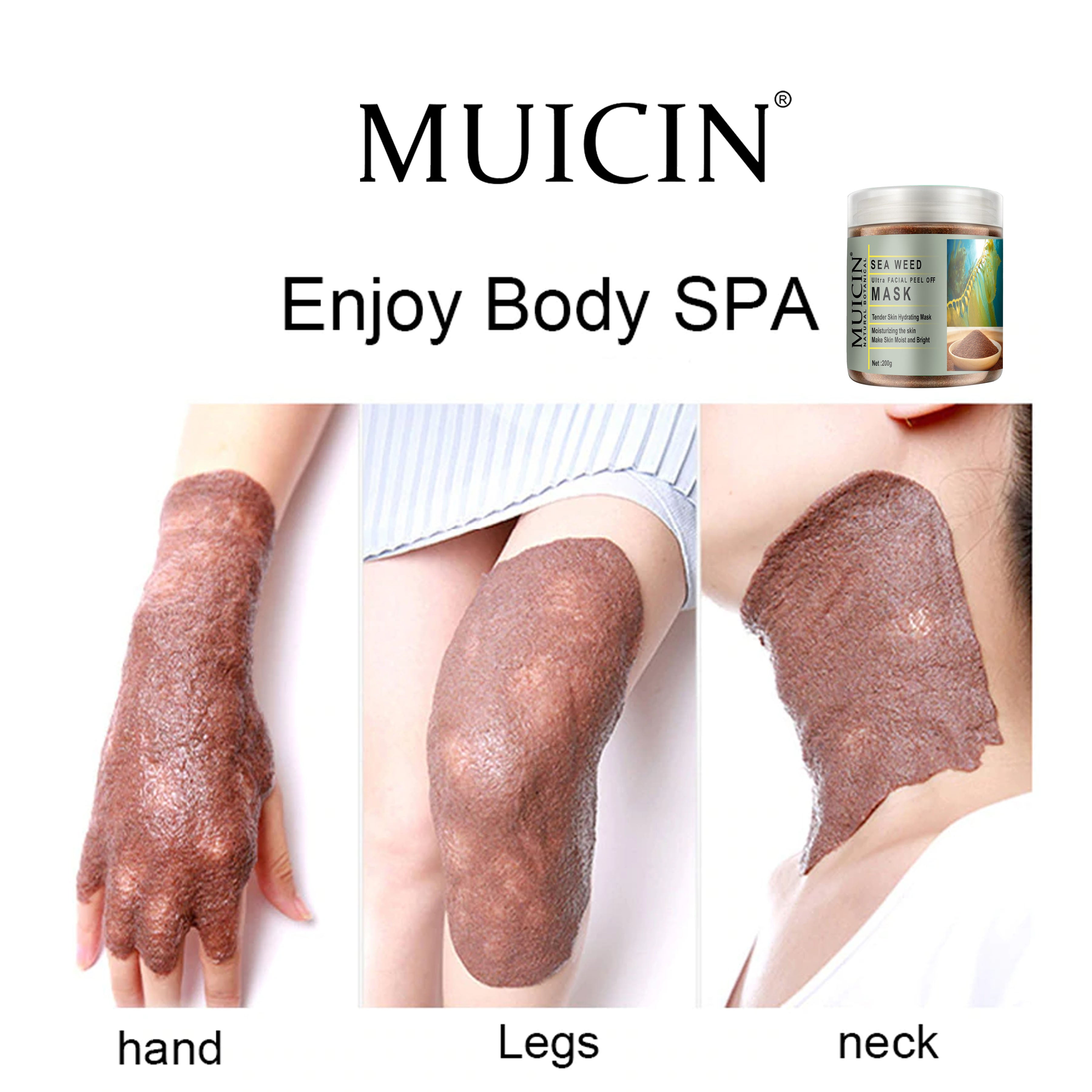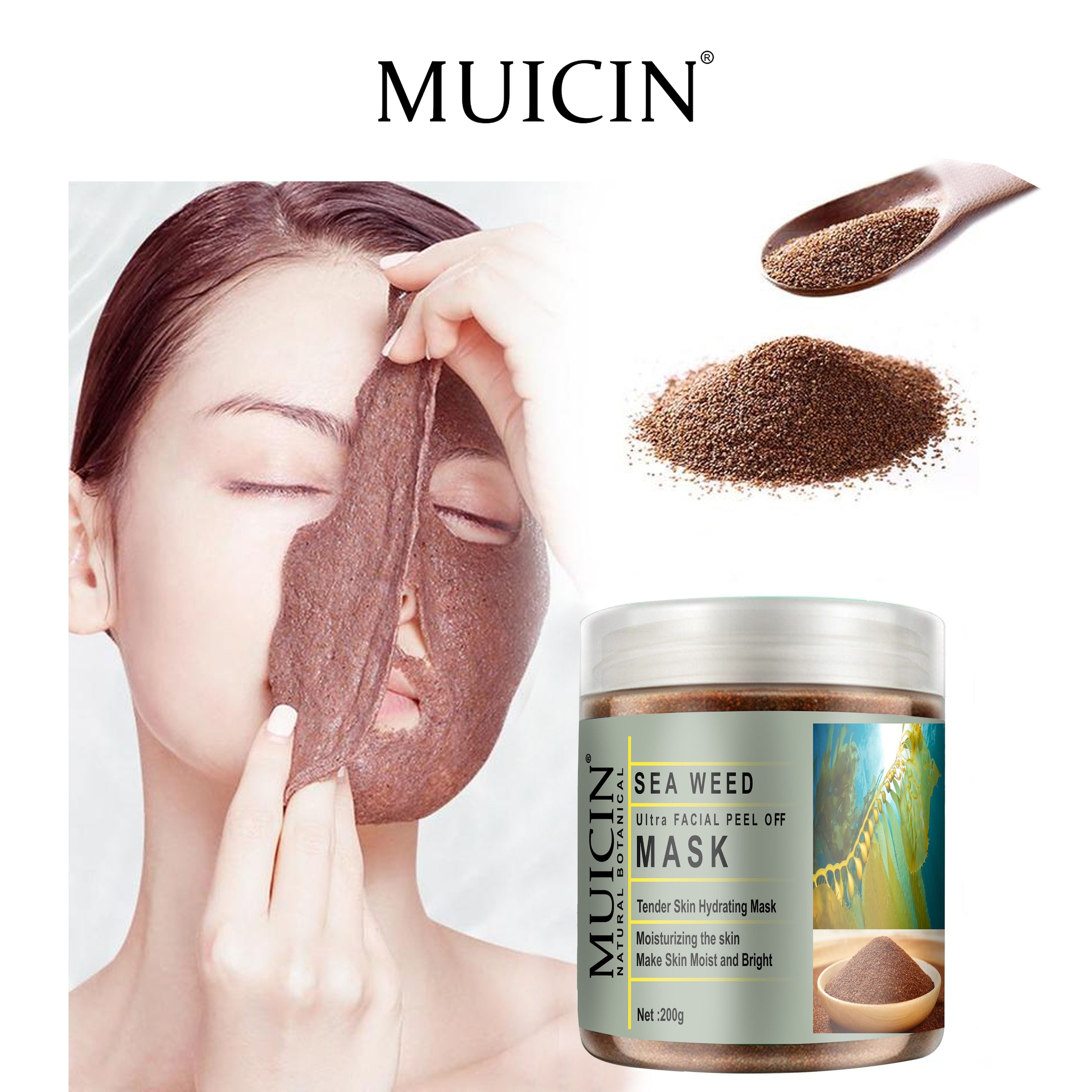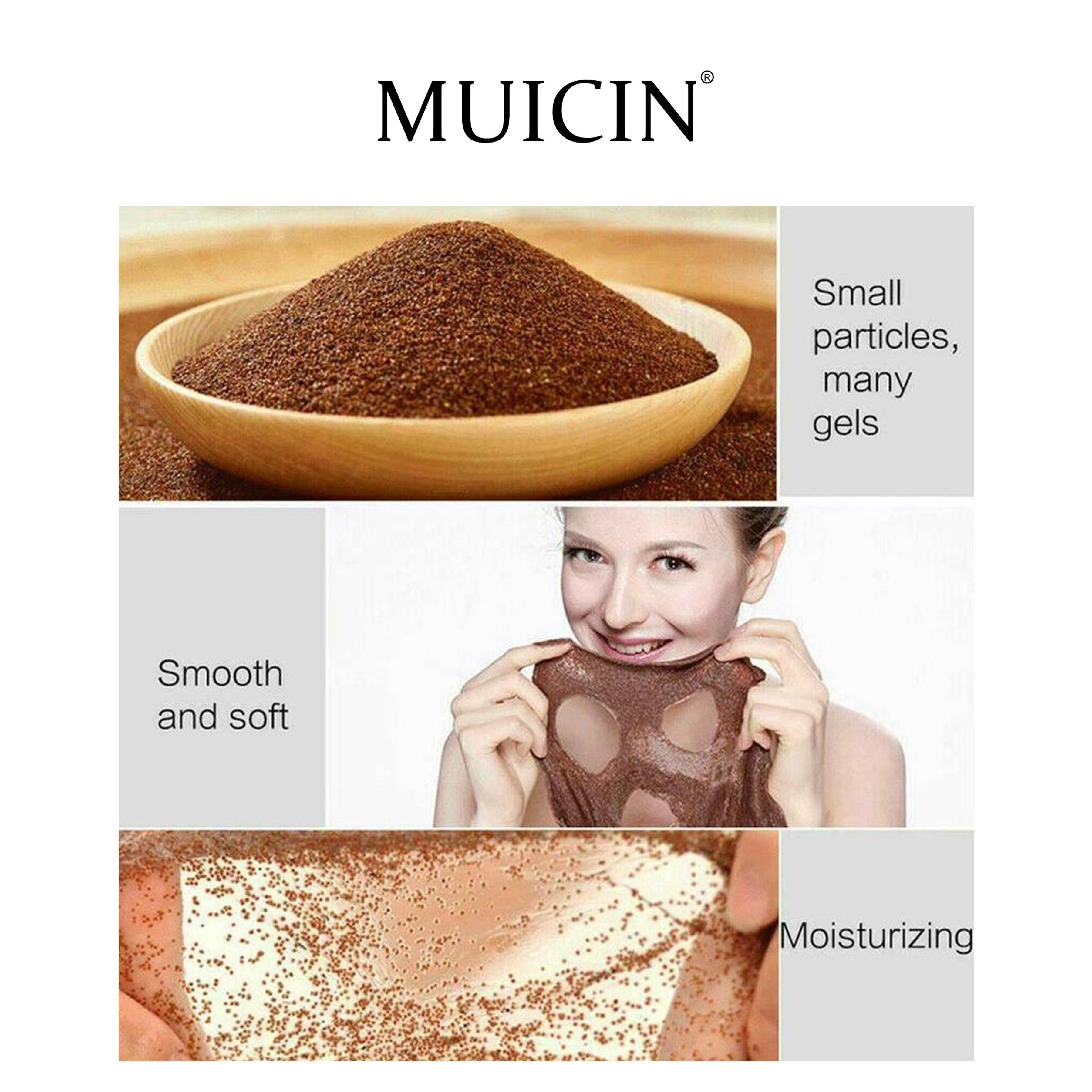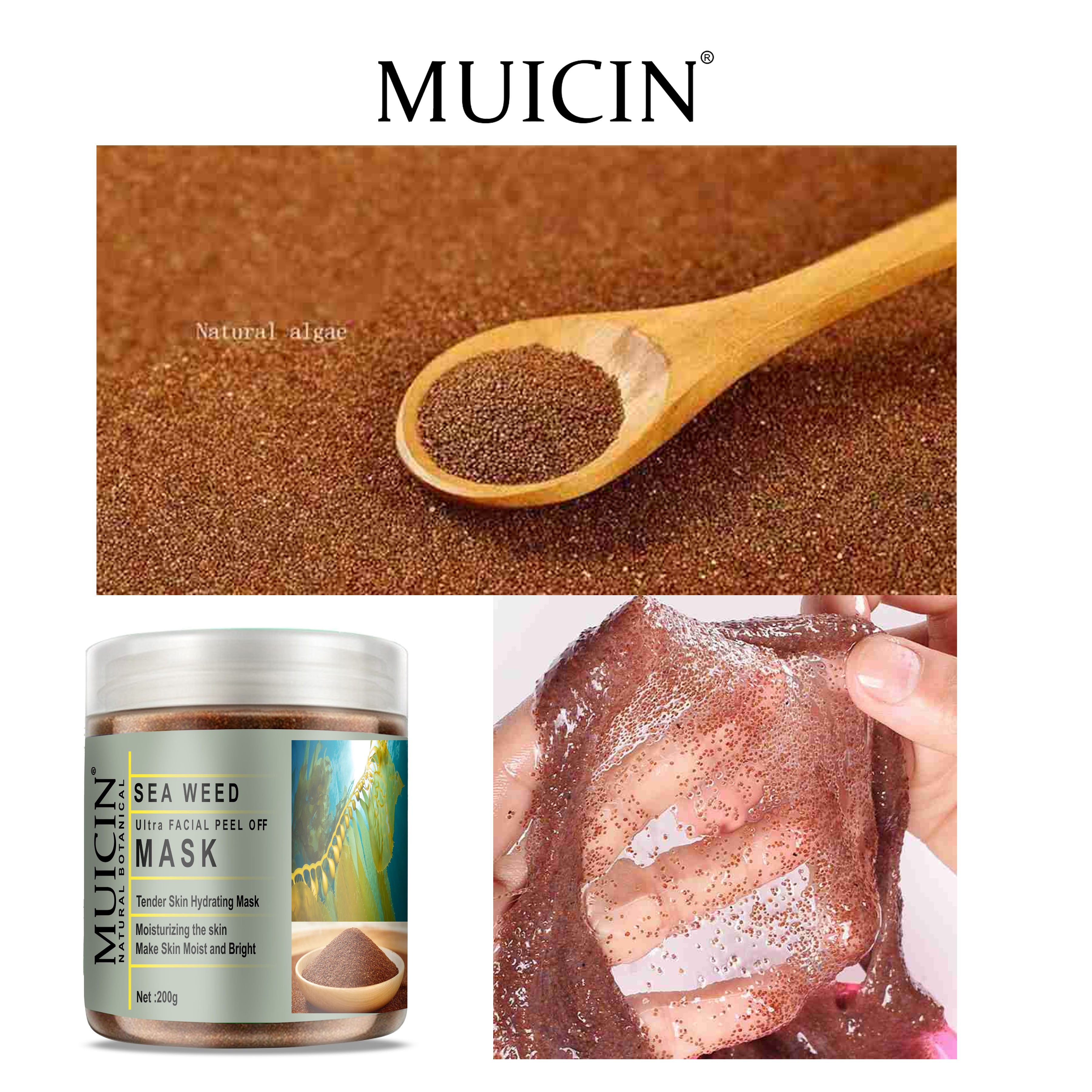 MUICIN Mask with seaweed particles. Nourishes and moisturizes. Smoothest and softens. Reduces dryness. Moisturizing formula enriched with seaweed.Small seaweed particles. Small particles of seaweed are easily glued with each other, forming a dense consistency. High ability to stick together. Small particles of seaweed are well glued to each other, forming a texture of mask that helps the collagen and nutrients better absorb into the skin.