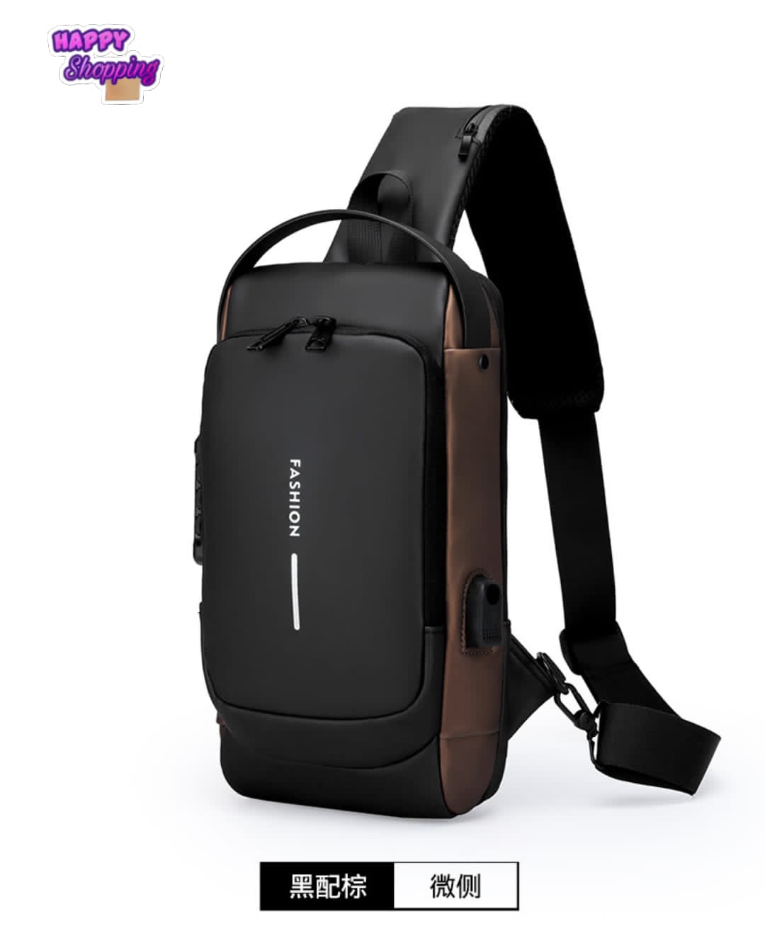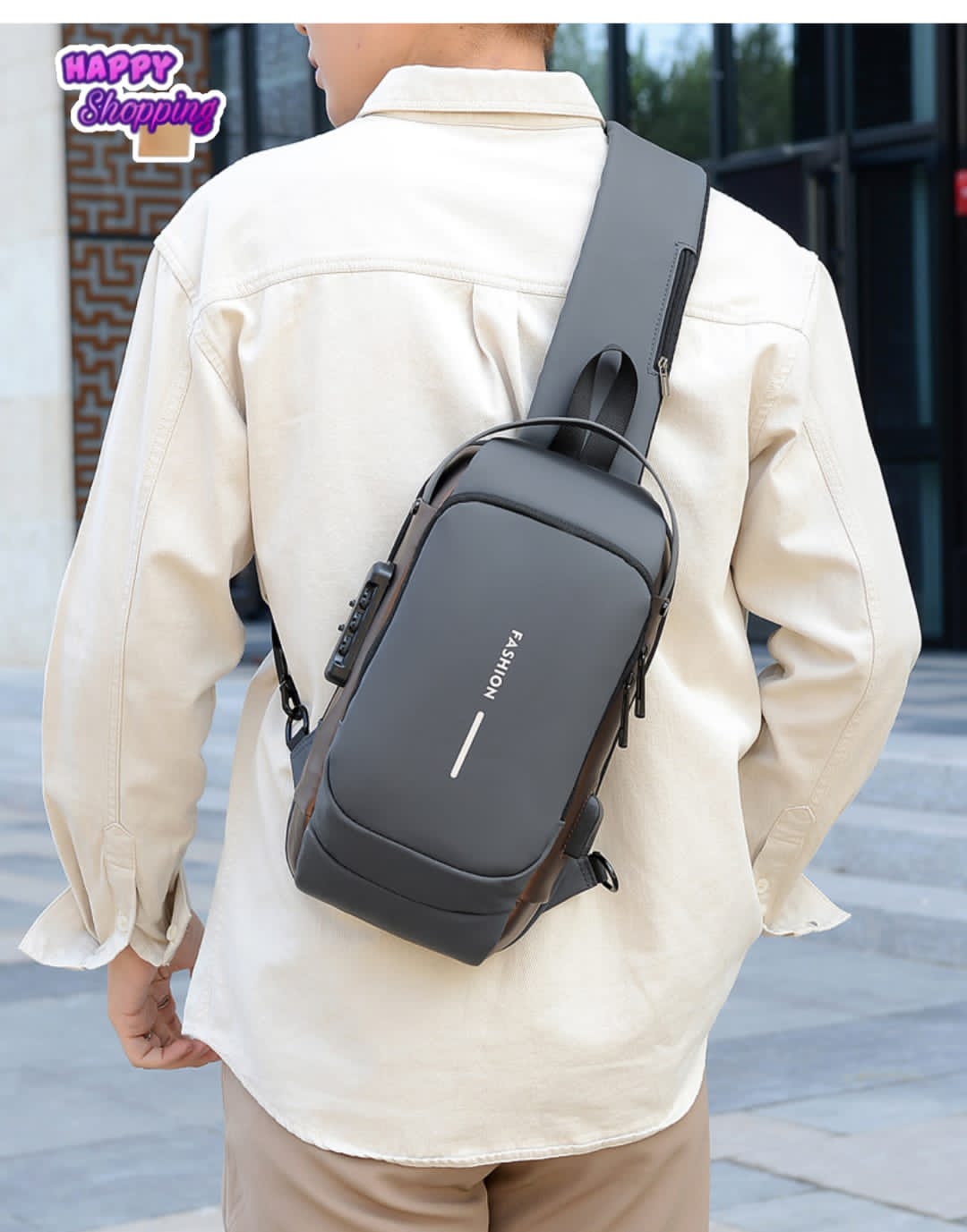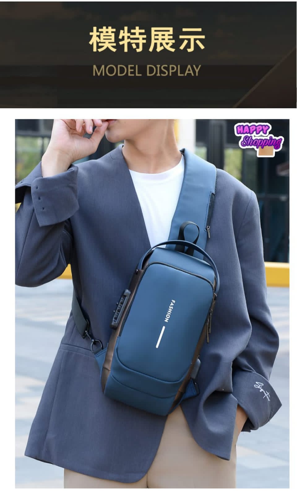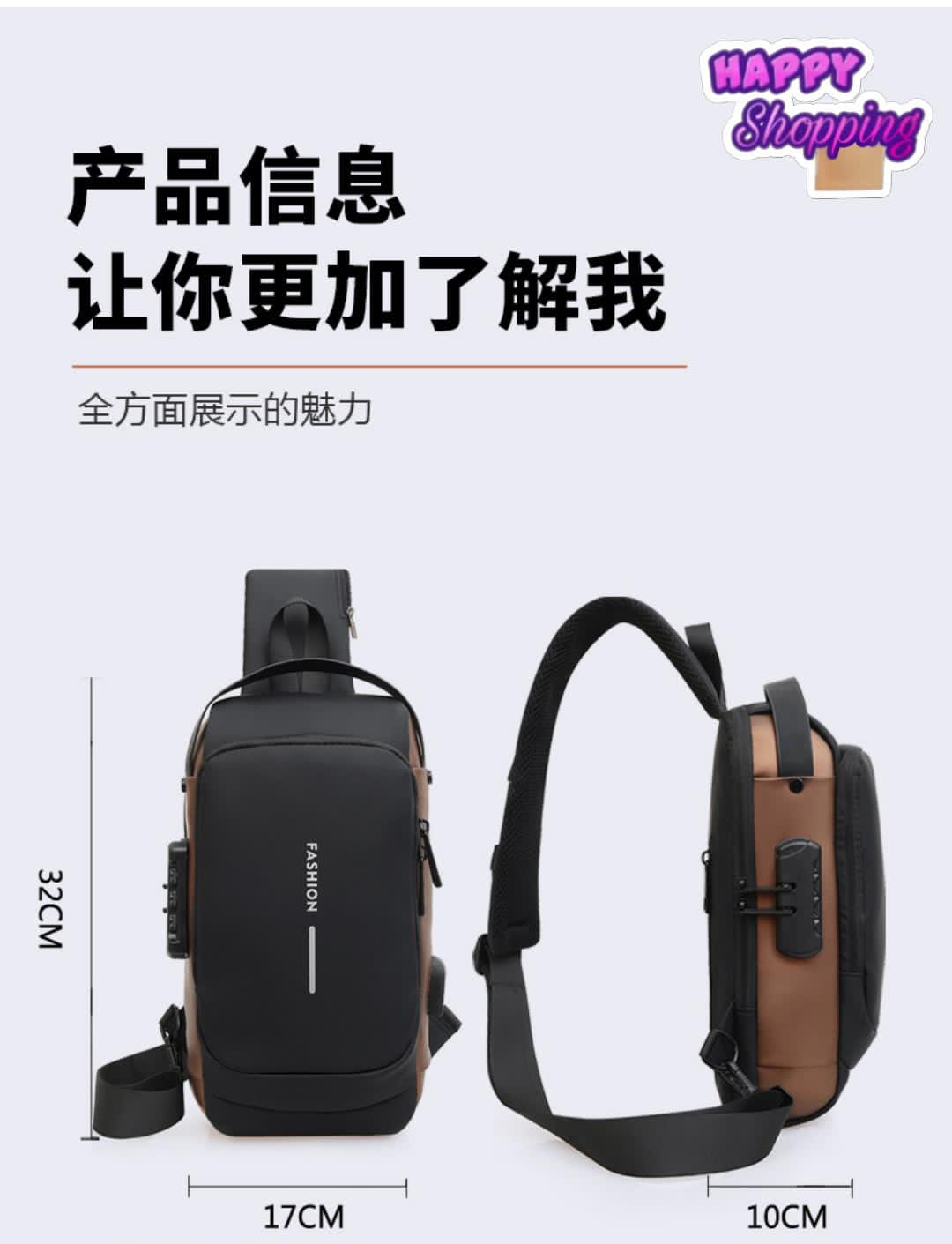 Experience premium quality with our water-proof oxford chest cross-body bag for men. The stylish design features multiple pockets, a side key lock, and a convenient USB port. Made of durable polyester and nylon, this spacious bag is perfect for traveling and comes with an adjustable strap for added comfort.