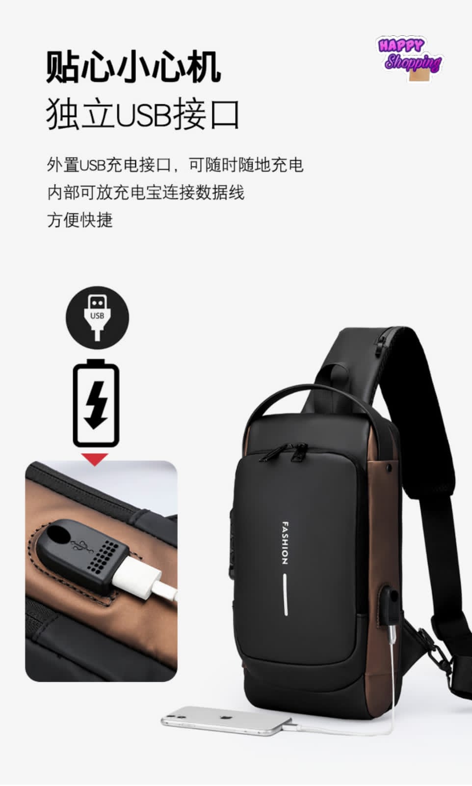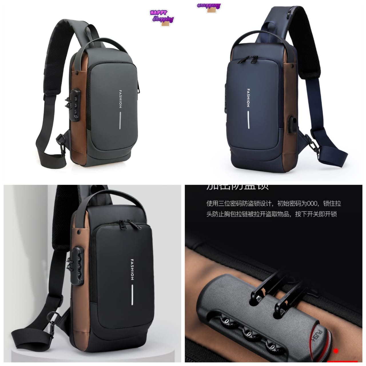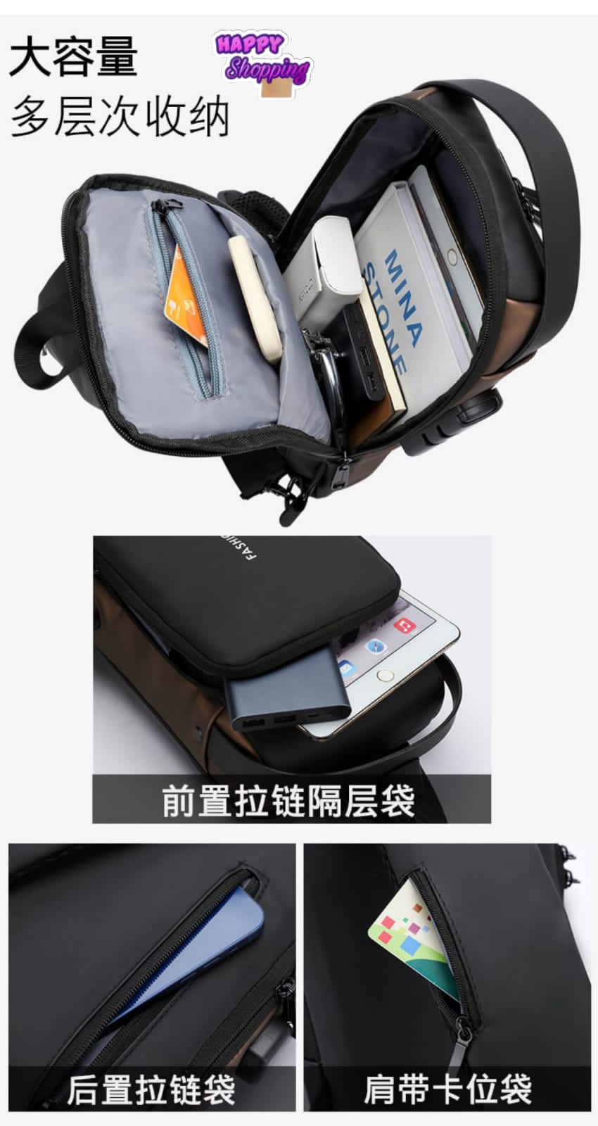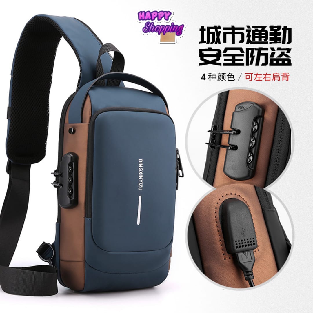 Experience premium quality with our water-proof oxford chest cross-body bag for men. The stylish design features multiple pockets, a side key lock, and a convenient USB port. Made of durable polyester and nylon, this spacious bag is perfect for traveling and comes with an adjustable strap for added comfort.