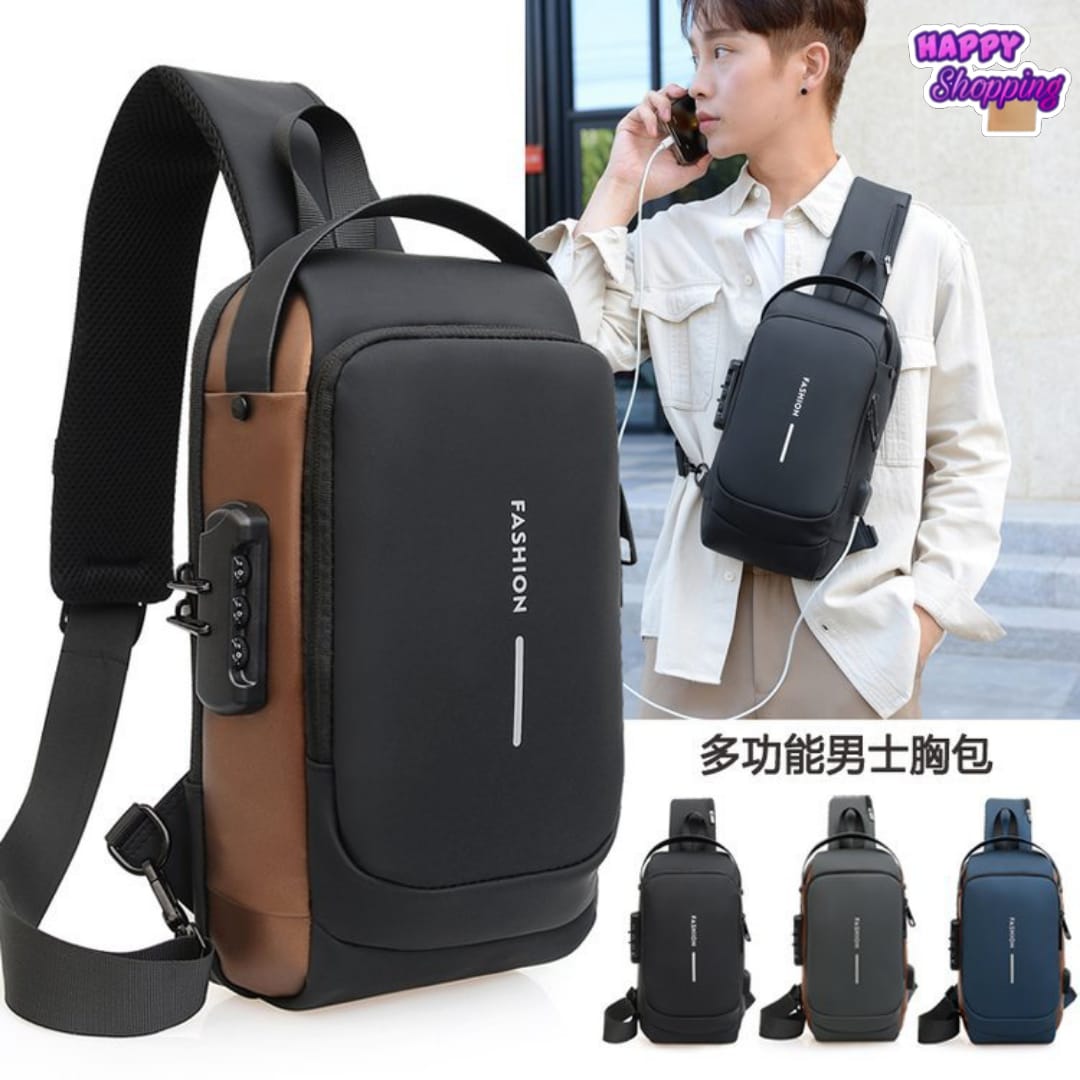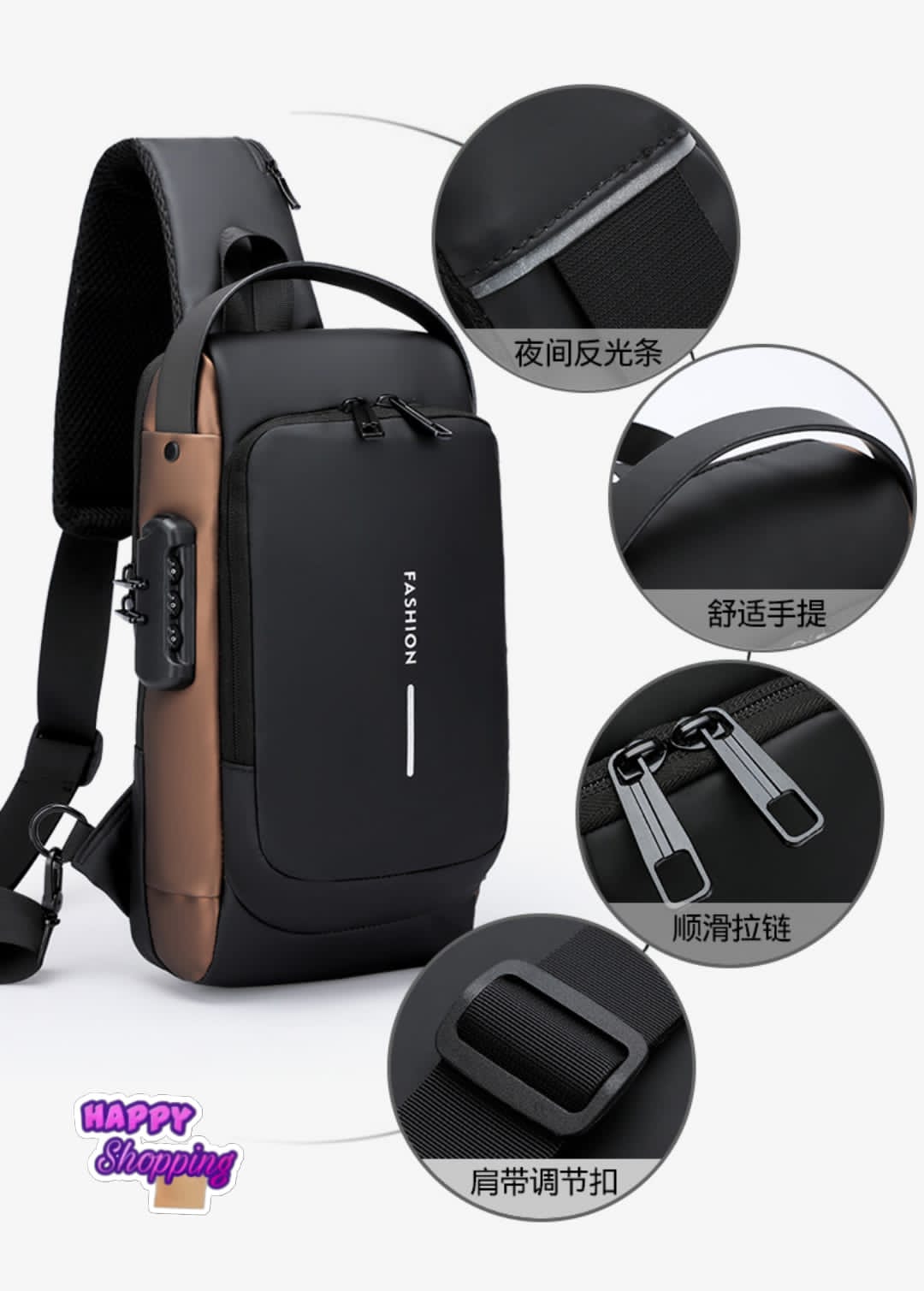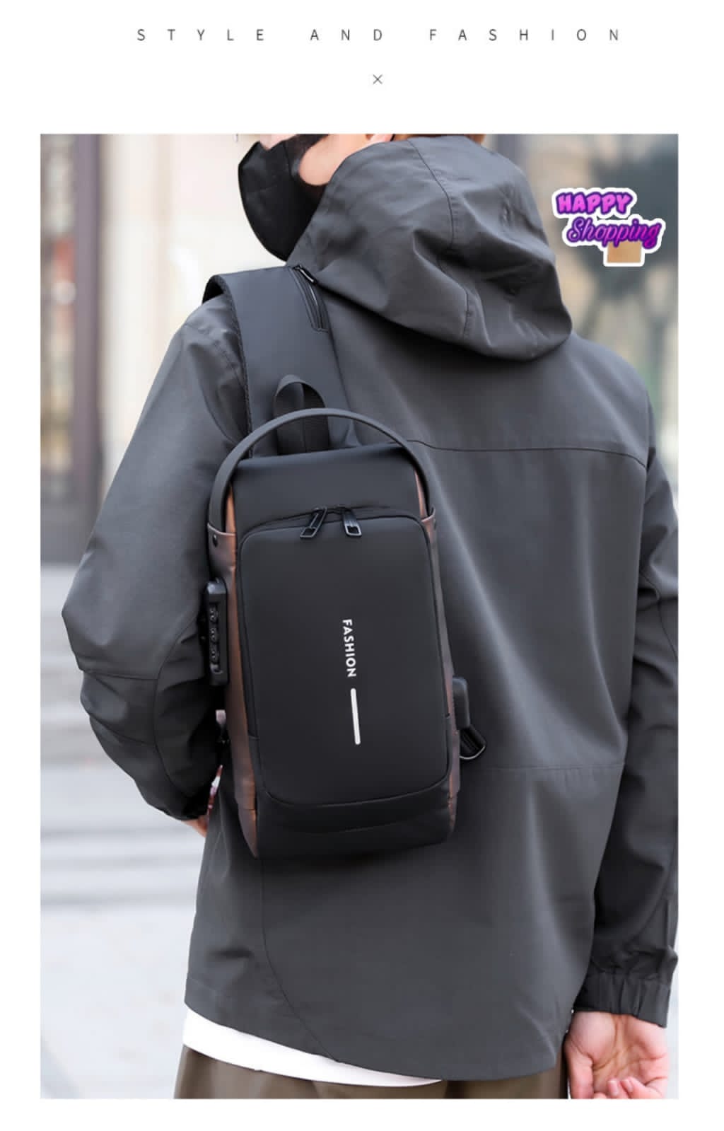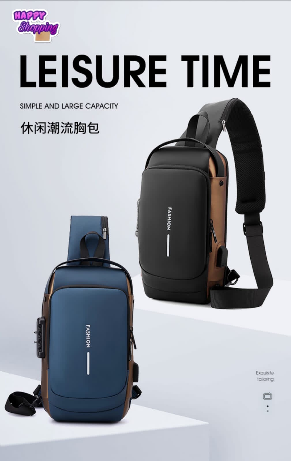 Experience premium quality with our water-proof oxford chest cross-body bag for men. The stylish design features multiple pockets, a side key lock, and a convenient USB port. Made of durable polyester and nylon, this spacious bag is perfect for traveling and comes with an adjustable strap for added comfort.