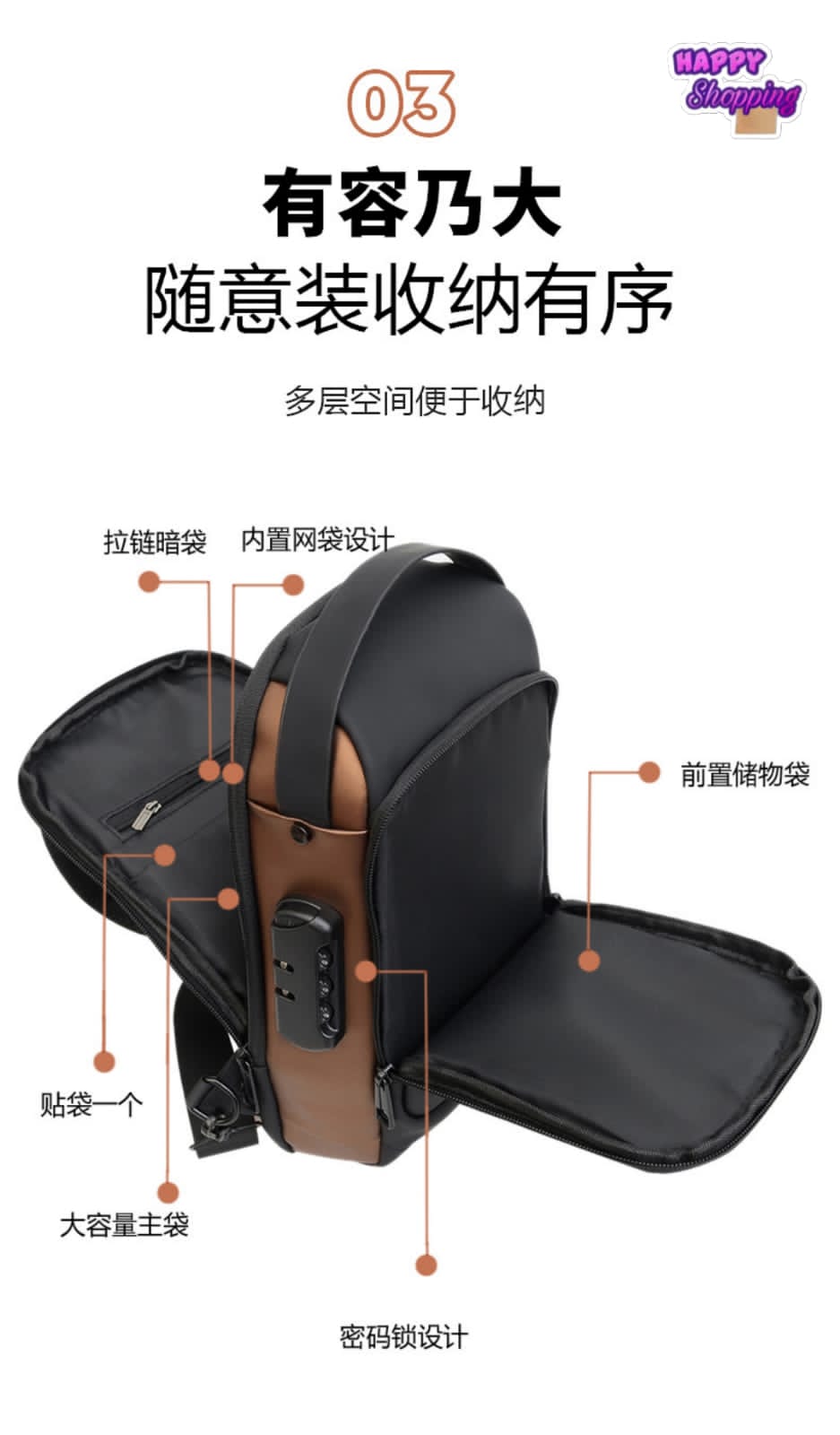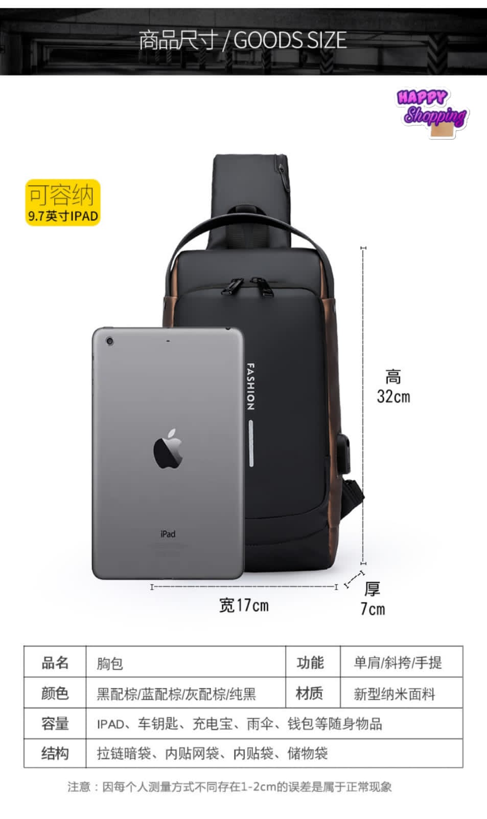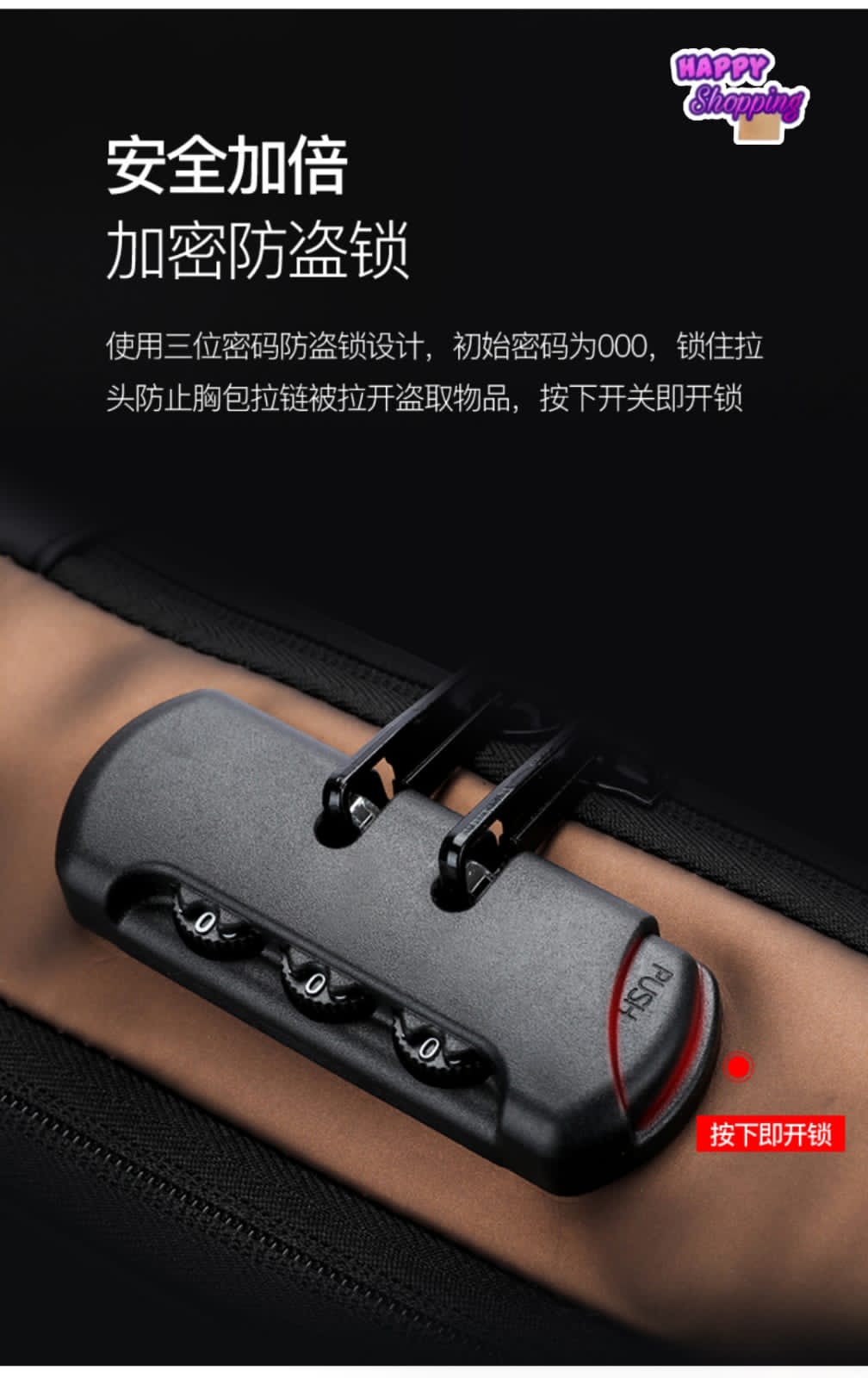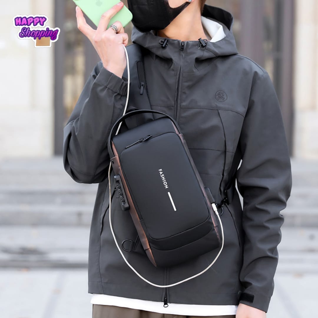 Experience premium quality with our water-proof oxford chest cross-body bag for men. The stylish design features multiple pockets, a side key lock, and a convenient USB port. Made of durable polyester and nylon, this spacious bag is perfect for traveling and comes with an adjustable strap for added comfort.