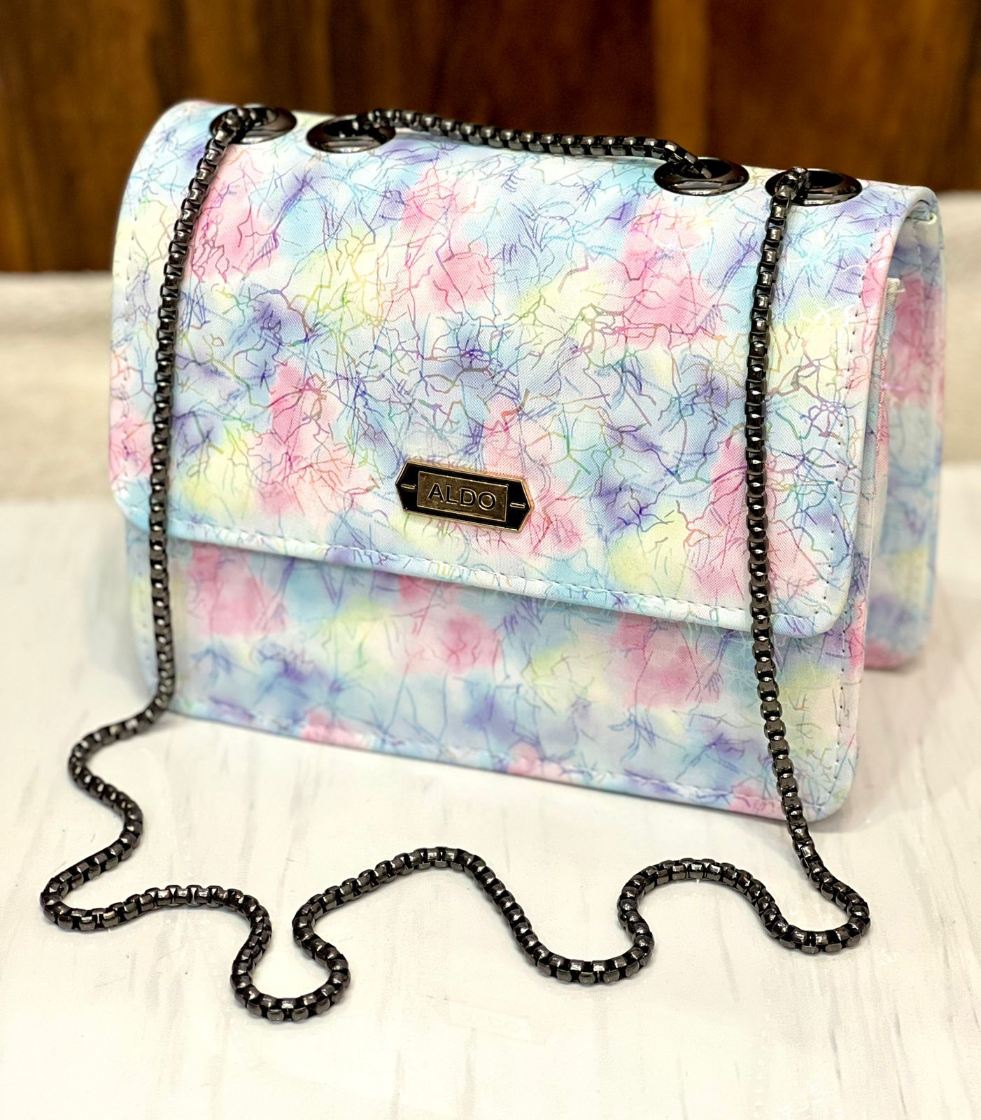 Introducing the latest addition to our collection, the Aaa quality ALDO girls' crossbody bag, designed to elevate any outfit. This stylish accessory features a long chain for versatile wear and is available in a range of beautiful colors, making it perfect for any occasion. Its compact design ensures practicality while maintaining a chic appearance, ideal for young fashion enthusiasts.