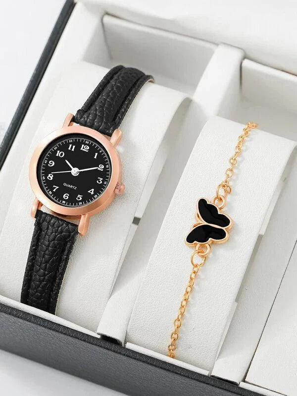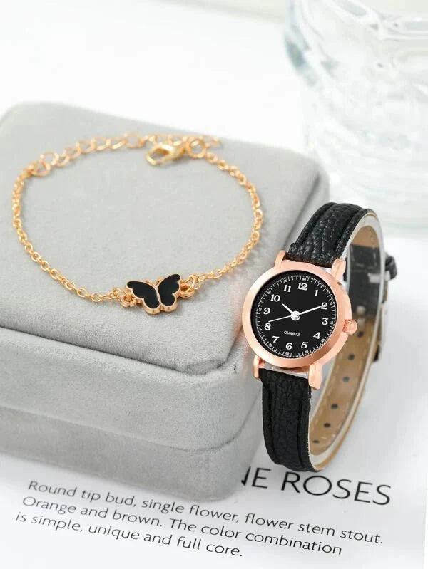 Shein - Embellishment Bracelet And Beaded Lychee Round Watch