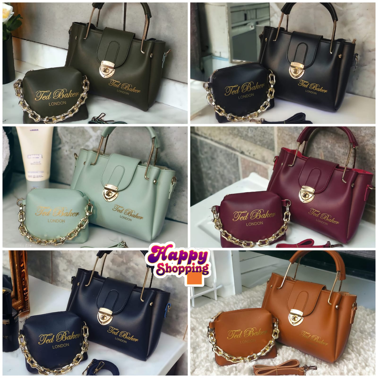 Experience luxury and convenience with the Ted Baker 2pcs Cross Bag set for Girls. This set includes a light-weight bag made with quality Rexgine material and comes in 6 different colors. It also features a long strap and chain for added versatility. Watch the real video to see it in action!