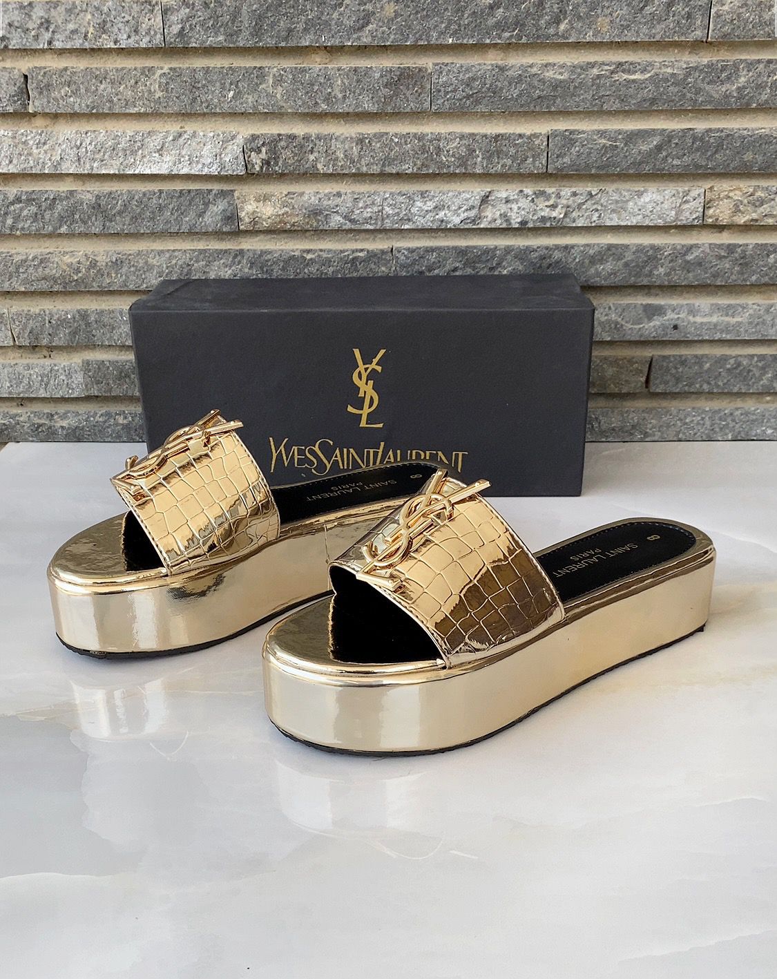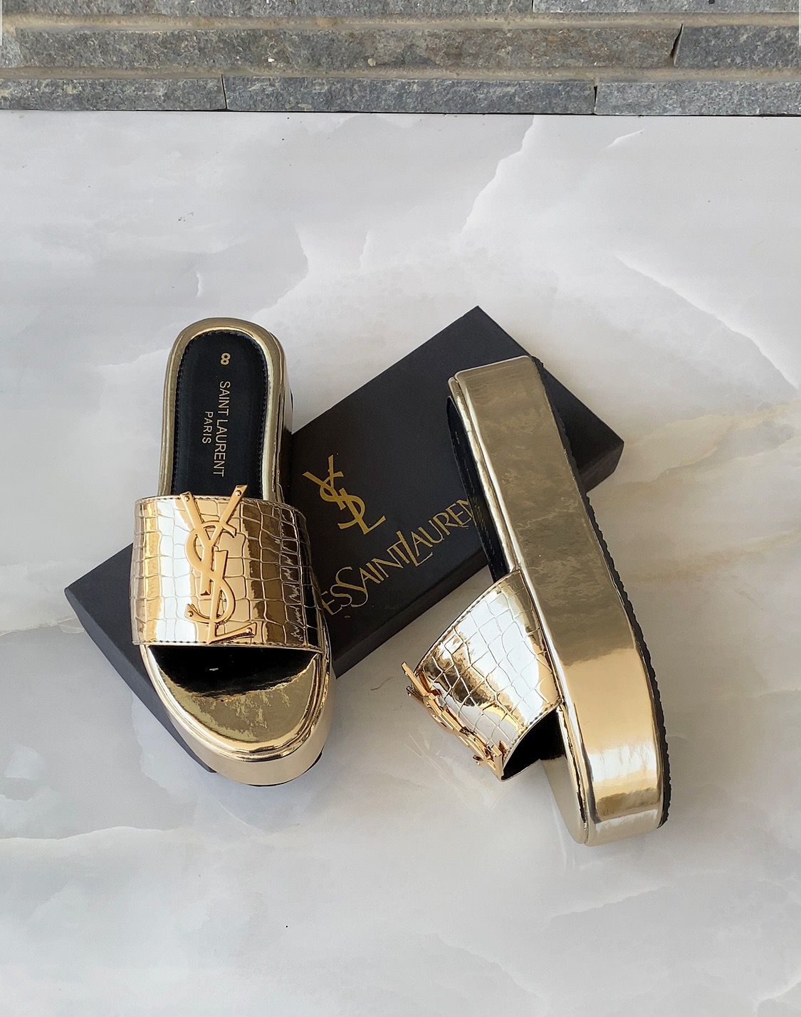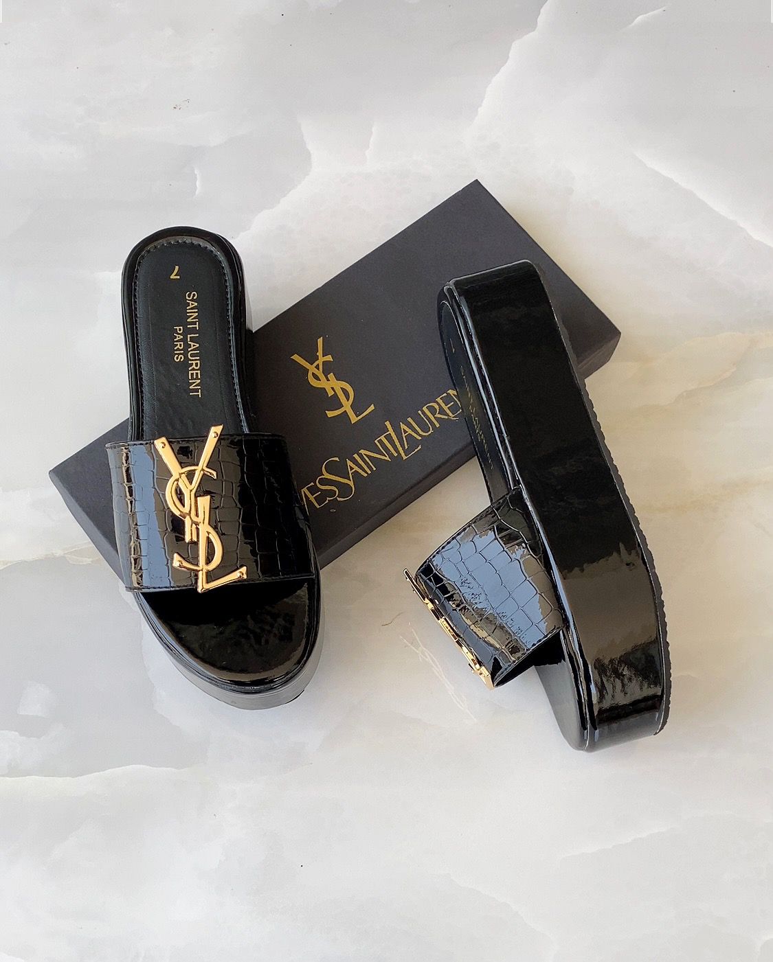 Introducing Yves Saint Lauren Wedges, expertly crafted for both style and comfort. These wedges elevate any outfit with their sleek design and quality materials. Experience the perfect combination of fashion and function with Yves Saint Lauren Wedges.